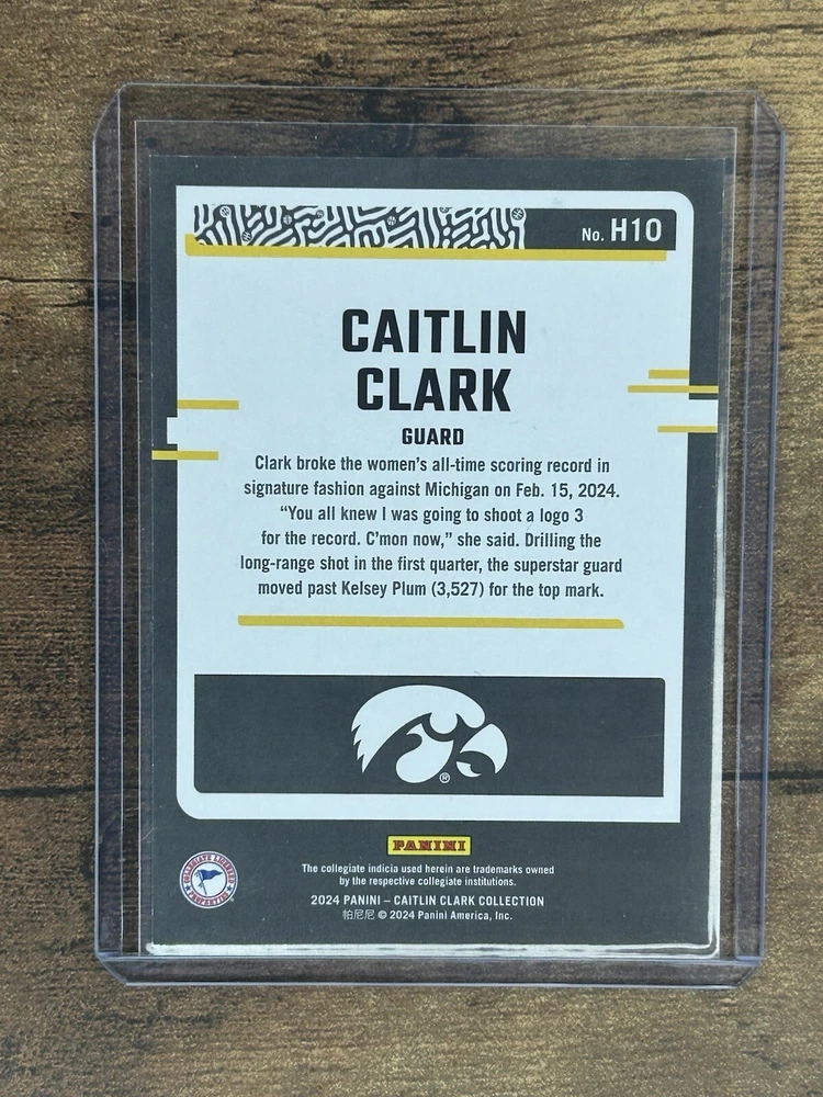 Elevate your collection with the 2024 Panini Caitlin Clark Collection Iowa Red Target #H10 SP All-Time Scoring card. This special short print card features the Iowa Hawkeyes' standout player and celebrates her remarkable achievements on the court. With its vibrant Target Red parallel variety, this piece is a must-have for both fans of basketball and collectors looking to add depth to their WNBA and NCAA memorabilia. The card is a tribute to Caitlin Clark's impressive tenure with the Indiana Fever and the Iowa Hawkeyes, and it's a great way to commemorate her legacy. Score has authenticated the autograph, ensuring its value and authenticity. As part of the 2024 Panini set, this sports trading card is a timely acquisition for those who appreciate the skill and dedication of this celebrated athlete.