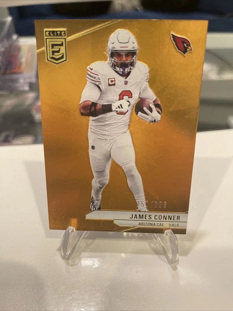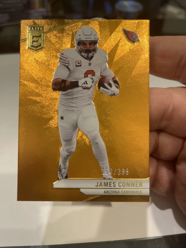 This 2024 Panini Donruss Elite Football card features James Conner of the Arizona Cardinals. The card is a parallel variety, specifically an orange parallel with a print run of 399. It is also serial numbered and comes from the 2023 season. The card is perfect for collectors of sports trading cards, especially those who focus on football and the National Football League (NFL). Manufactured by Donruss, this card is part of the 2024 Panini Donruss Elite Football set. With its unique features and high-quality design, this card is a must-have for any serious collector.