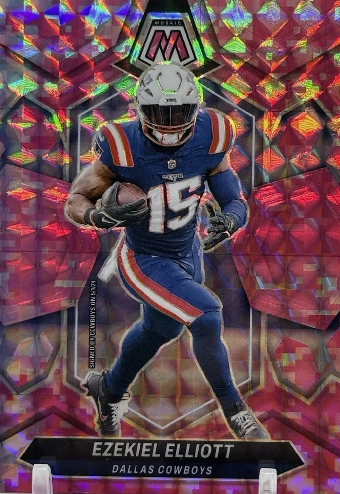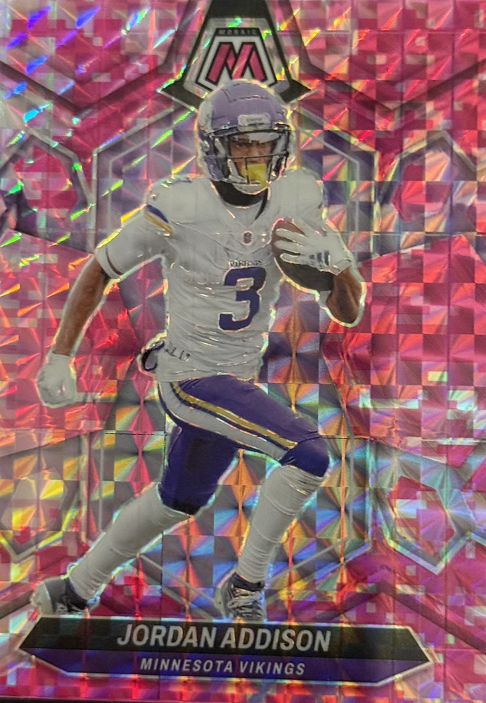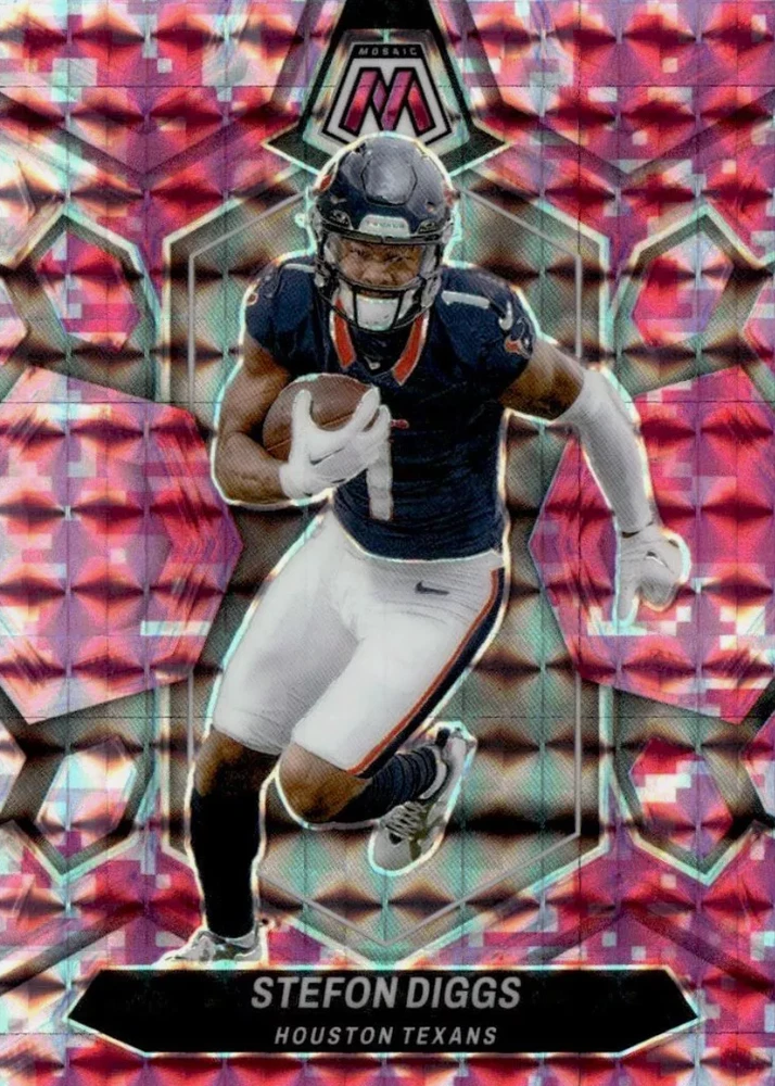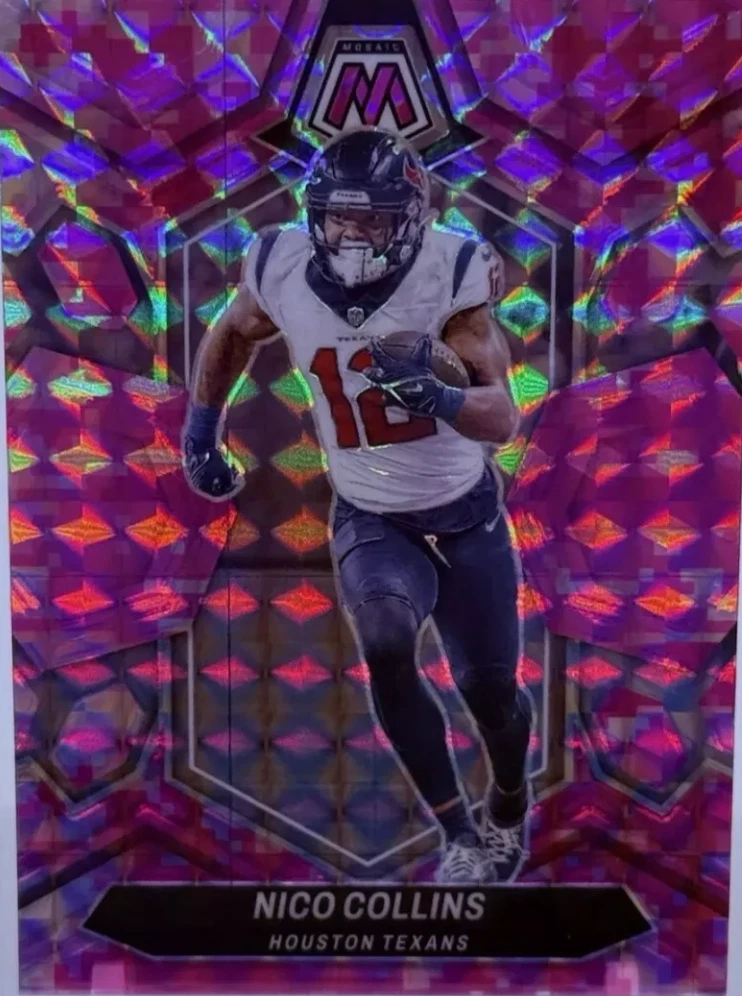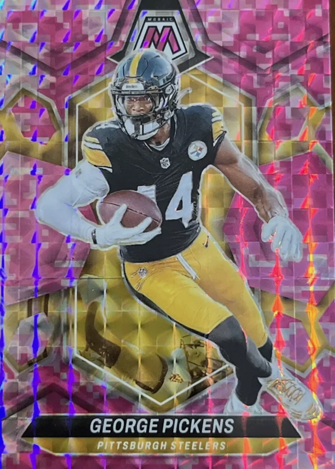 Elevate your football card collection with the 2024 Panini Mosaic Base Set, featuring a vibrant Camo Pink parallel that adds a striking touch to your assortment. This set includes cards numbered 1-250, showcasing notable players such as Chris Olave, George Pickens, Lee Evans, and Tony Pollard, capturing the essence of the game in a collectible format. Crafted with care in the United States and boasting the quality of Panini manufacturing, these cards are printed on sturdy card stock with a 35 Pt. thickness, ensuring lasting durability. While not autographed, the parallel variety adds an element of rarity and desirability. The cards are presented in English and are an original print from the 2024 season, ready to be shipped free of charge to your doorstep.