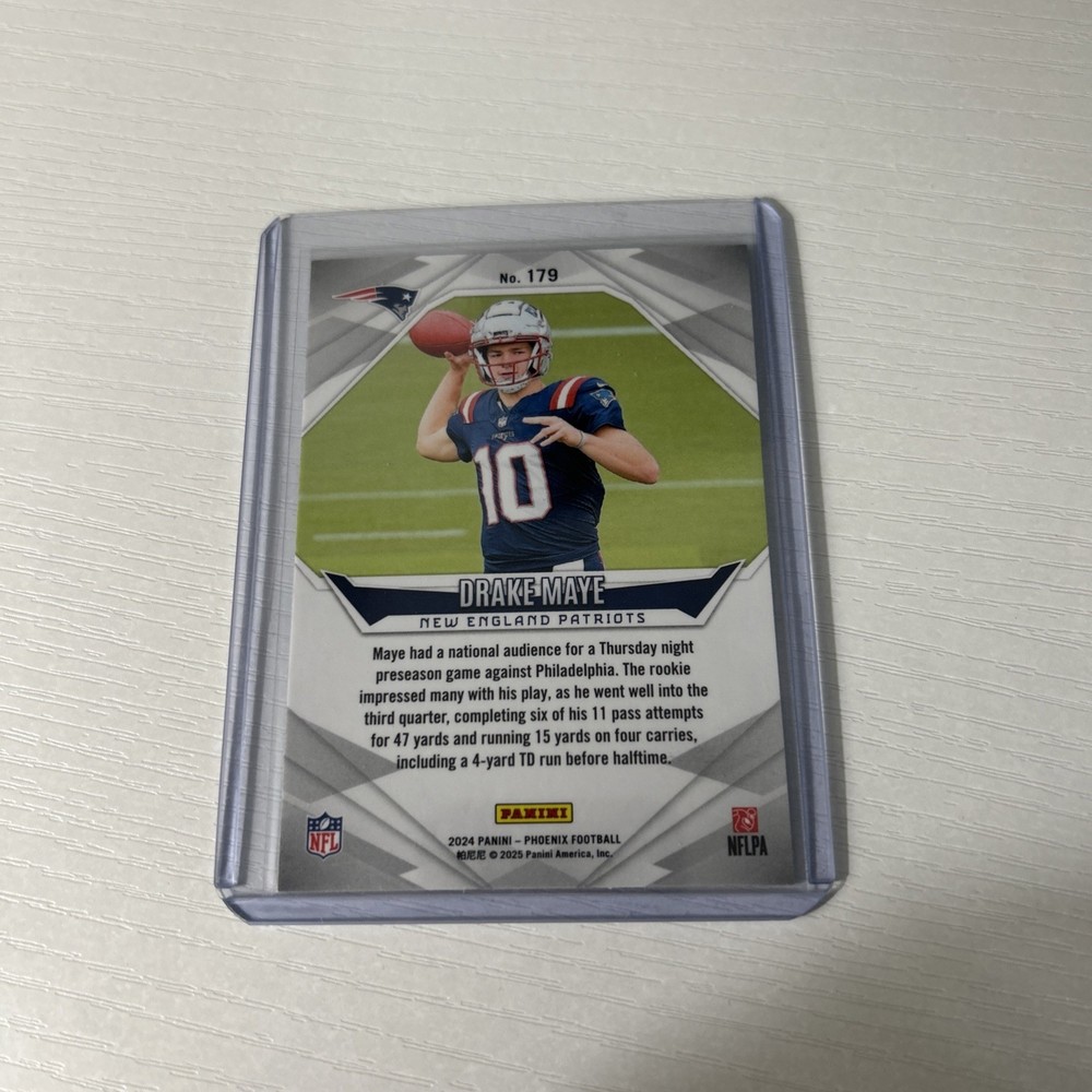 Type:Sports Trading CardFeatures:Rookie, Base SetPlayer/Athlete:Drake MayeAdditional Description:Rookies - Drake MayeParallel/Variety:[Base]Card Number:179Card Condition:Near mint or betterLeague:National Football League (NFL)Team:New England PatriotsSeries:Panini PhoenixManufacturer:PaniniSport:FootballSeason:2024Subset:RookiesSet:2024 Panini Phoenix