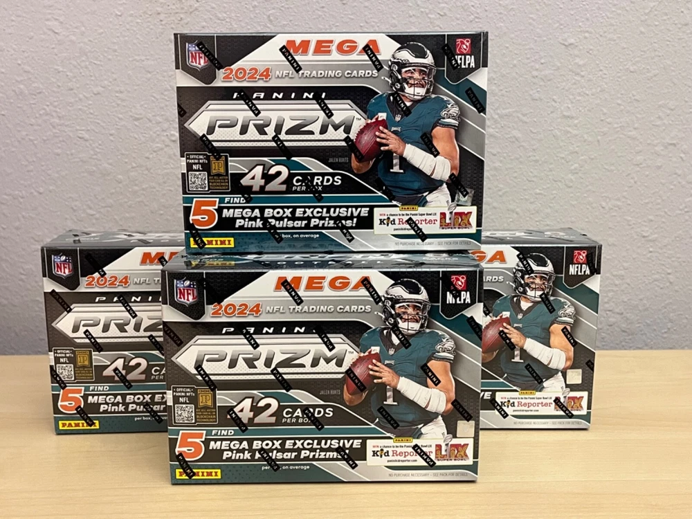 - 2024 Panini Prizm Football Trading Cards Mega Box NFL 1 Memorabilia NEW IN HAND - BRAND NEW IN ORIGINAL PACKAGING - SHIPS OUT IMMEDIATELY - REPUTABLE SELLER : CHECK MY FEEDBACK!!! Please reference pictures for description From smoke free / pet free home YOU PICK THE SHIPPING OPTION. GROUND ADVANTAGE IS THE CHEAPEST IF YOU REQUIRE EXPEDITED SHIPPING OR EXTRA PACKAGING PLEASE SELECT ONE OF THE LISTED EXPEDITED SHIPPING SERVICES. THANK YOU! Notes: A10