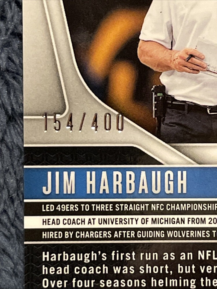 Season:2024Player/Athlete:Jim HarbaughVintage:NoAutographed:NoTeam:Los Angeles ChargersParallel/Variety:PrizmType:Sports Trading CardFeatures:Serial Numbered, Base SetPrint Run:400Year Manufactured:2024Set:2024 Panini PrizmCountry/Region of Manufacture:United StatesOriginal/Licensed Reprint:OriginalMaterial:Card StockManufacturer:PaniniLeague:National Football League (NFL)Sport:FootballCard Number:163