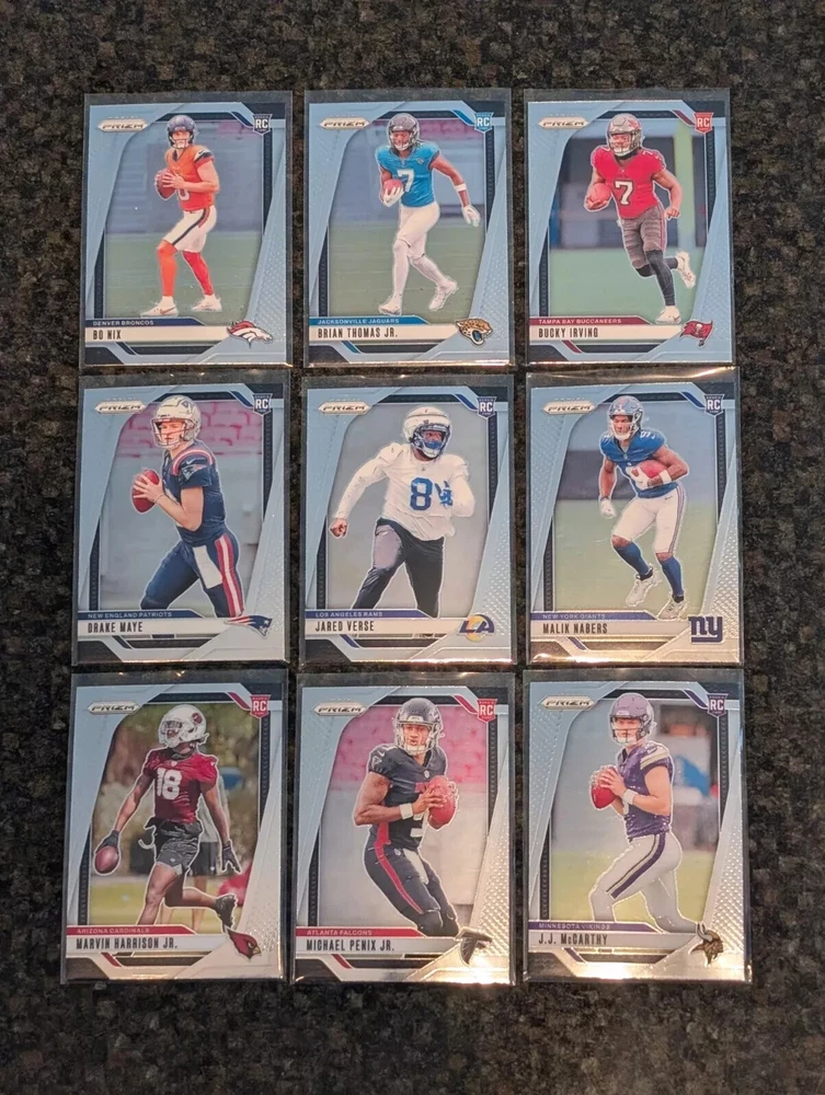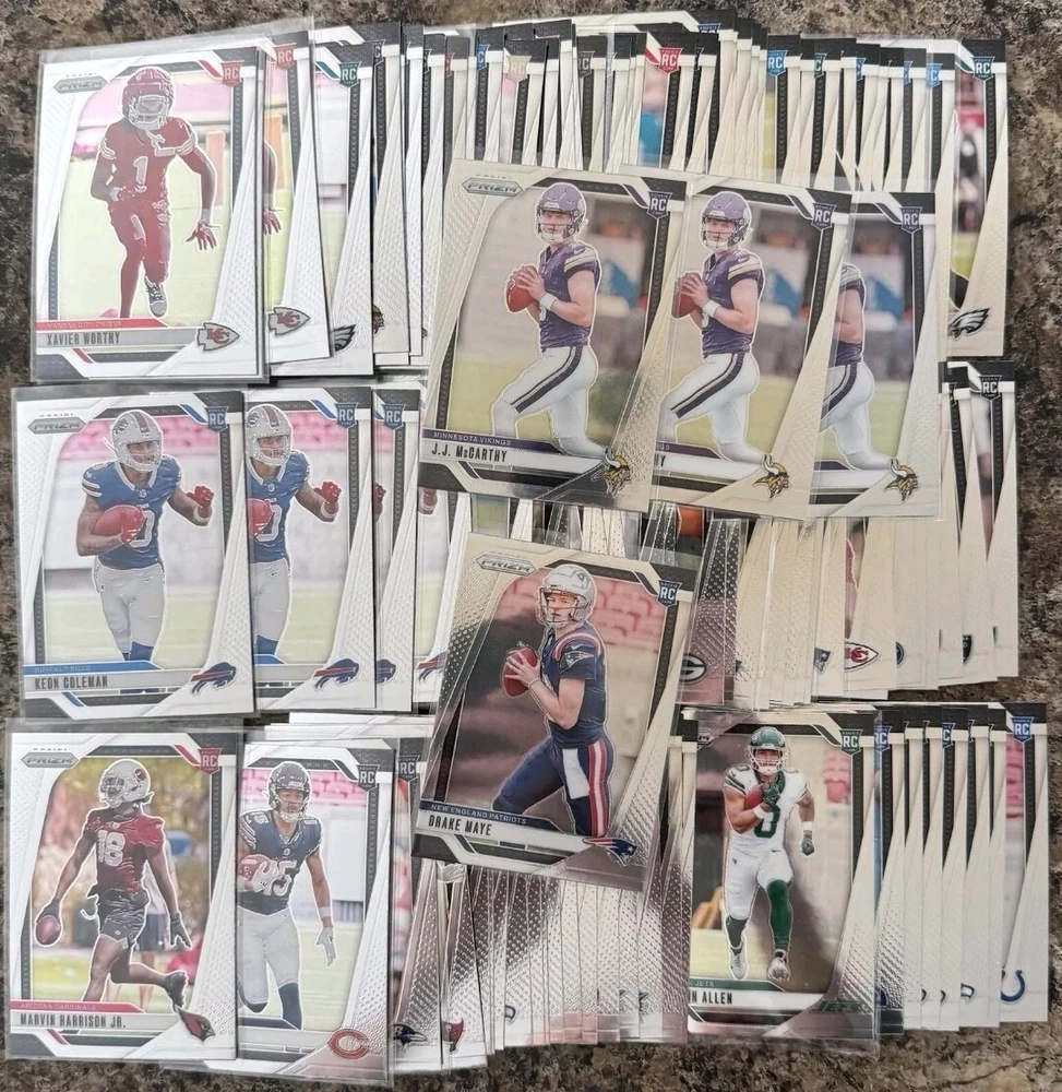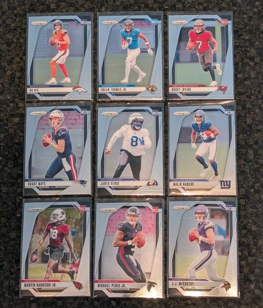 The product is a 2024 Panini Prizm football trading card from the rookie series. It is numbered #301-400, allowing you to select a specific card to complete your set. The card is not autographed and is manufactured by Panini. It is part of the National Football League (NFL) and features football as the sport.
