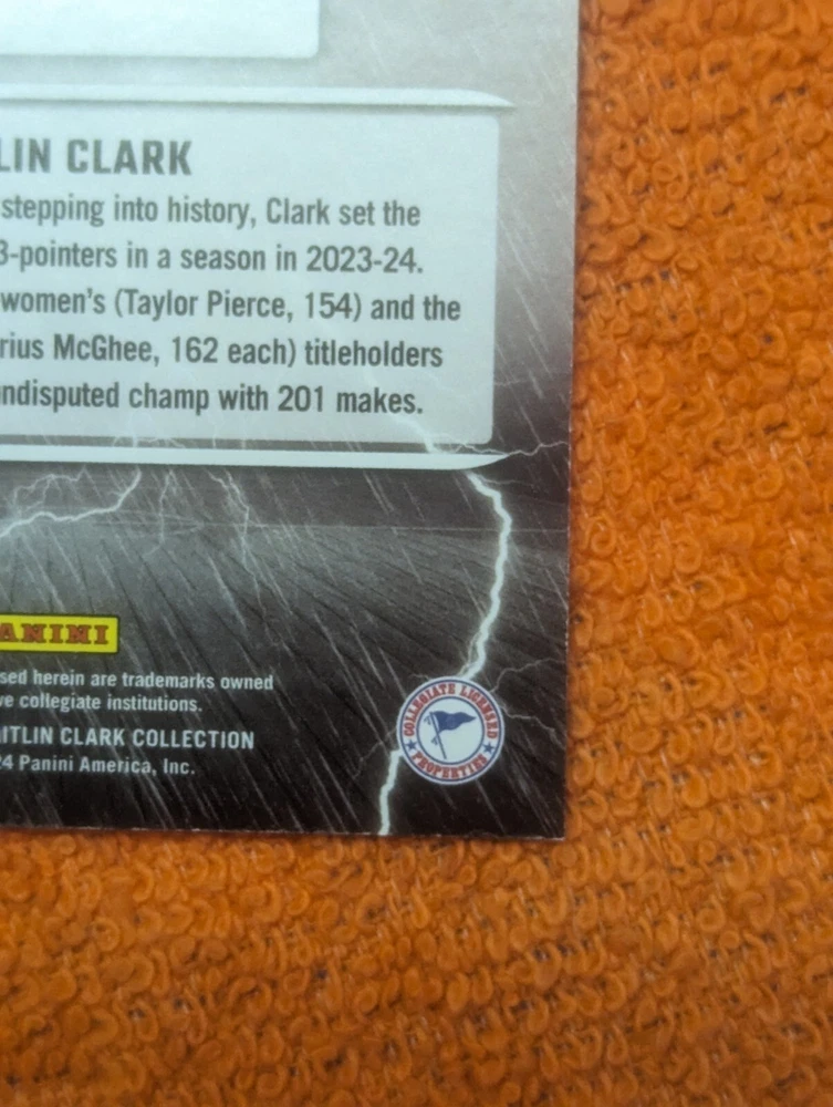 The product is a 2024 Panini Caitlin Clark Collection trading card featuring the "Raining 3s" insert design. It showcases Caitlin Clark, a player for the Iowa Hawkeyes in the WNBA. This sports trading card is part of the base set and does not have an autograph. The card is in excellent condition and is ungraded. With a focus on Caitlin Clark's basketball skills, specifically her ability to make 3-point shots, this card is a desirable collectible for fans of the sport and the player.