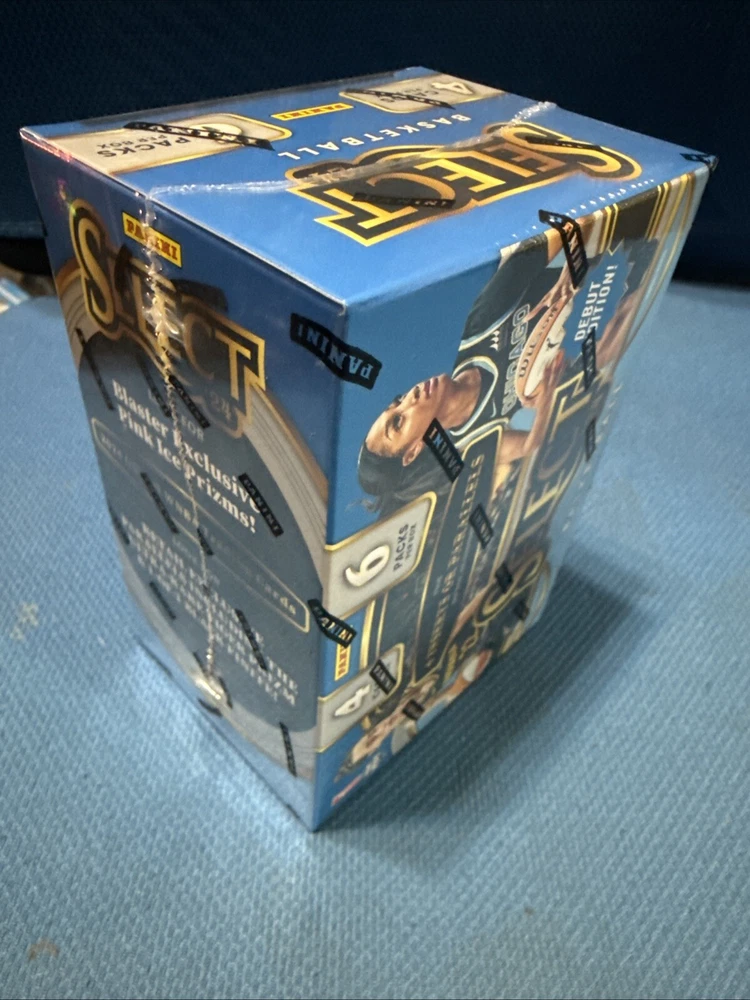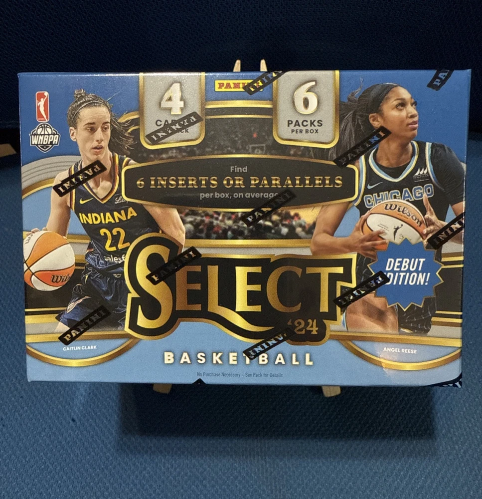 The product is a 2024 Panini Select WNBA Basketball Blaster box featuring 24 cards. It includes cards of players like Diana Taurasi, Sue Bird, and Breanna Stewart from teams such as Dallas Wings and Seattle Storm. These cards are serial numbered, short print, rookie, parallel, and insert cards, ideal for fans of the Women's National Basketball Association (WNBA). It is manufactured in the United States and is made of card stock.