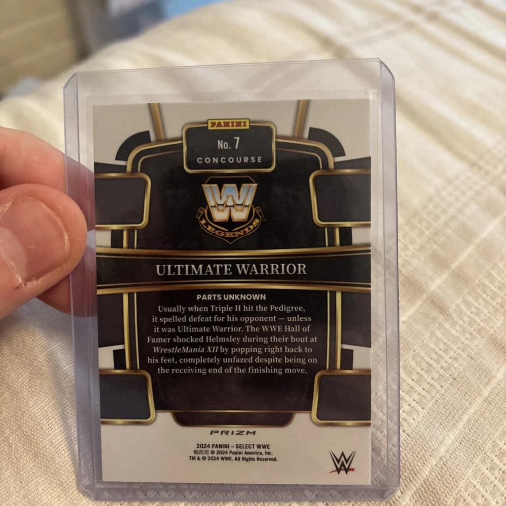 Elevate your collection with the 2024 Panini Select WWE Ultimate Warrior Orange Ice Prizm Concourse card. A must-have for fans and collectors, this stunning trading card showcases the iconic Ultimate Warrior in all his wrestling glory, captured in high-quality detail that brings the character to life. Crafted by Panini, the leading name in sports memorabilia, this card is part of the highly sought-after 2024 Panini Select set. It features a sleek Ice parallel/variety that adds a unique flair to this collectible piece. With its ties to the WWE league and the athleticism of the Ultimate Warrior, this card holds the potential to become a centerpiece in any sports trading card assemblage.