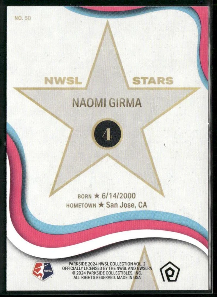 This is a nice example of a 2024 Parkside NWSL Vol 2 #50 Naomi Girma - Foil Other important information about this card: In 2024 Naomi Girma played for the San Diego Wave. Please check out our other listings for more great cards.