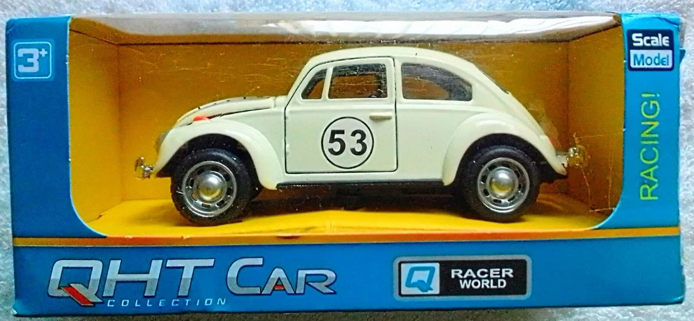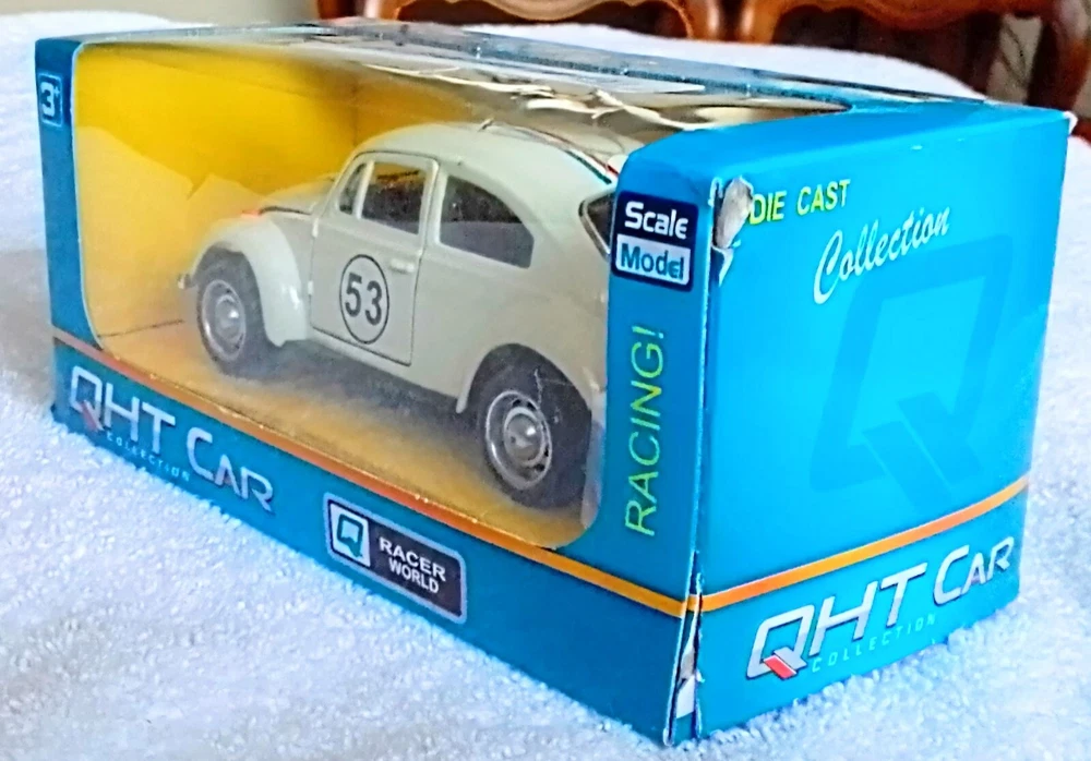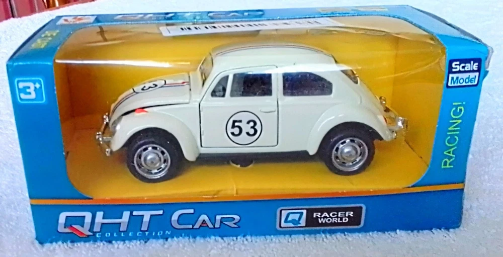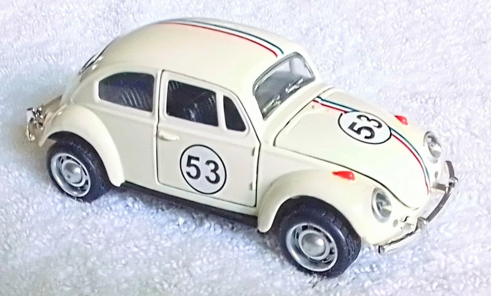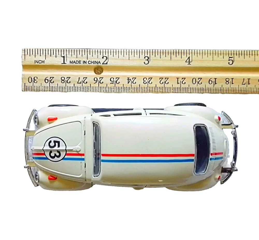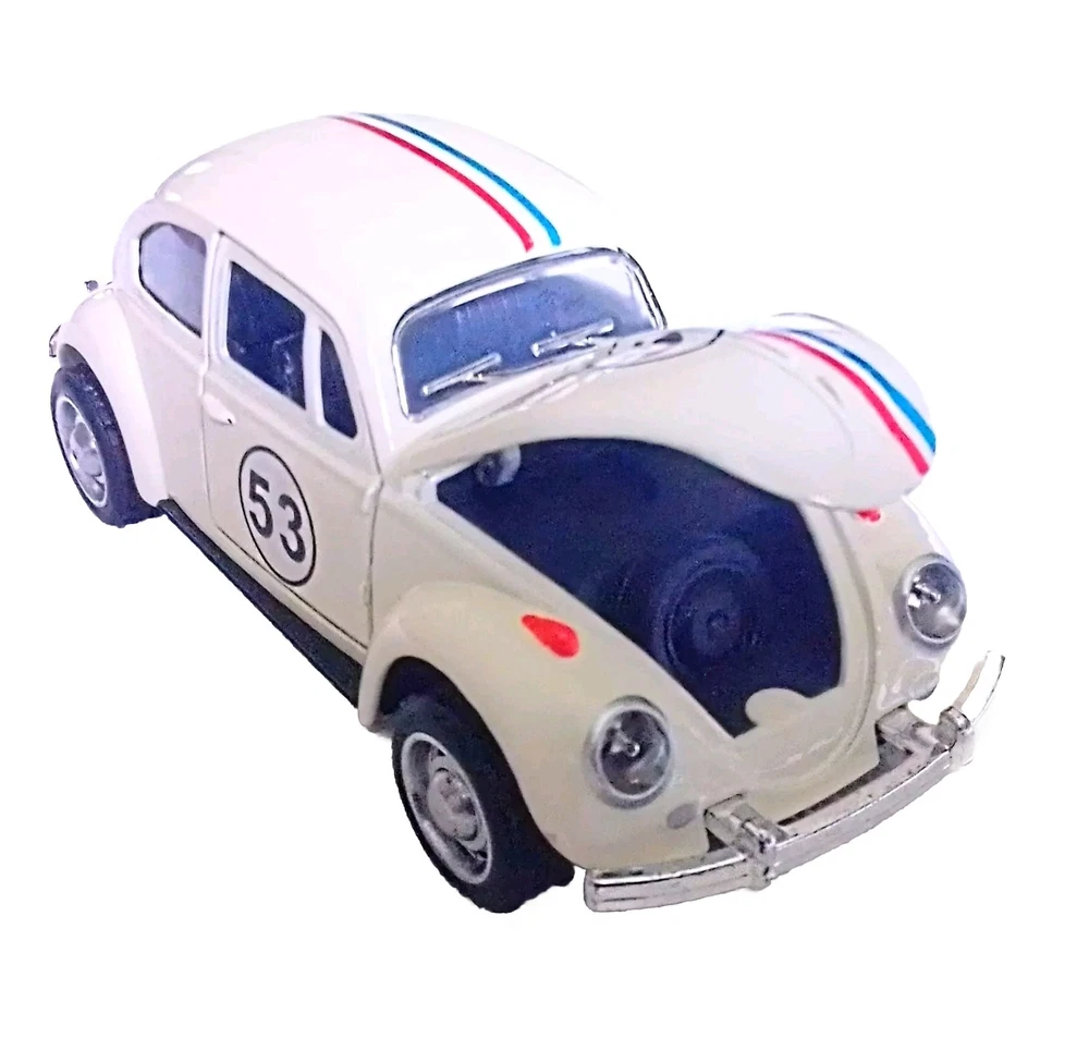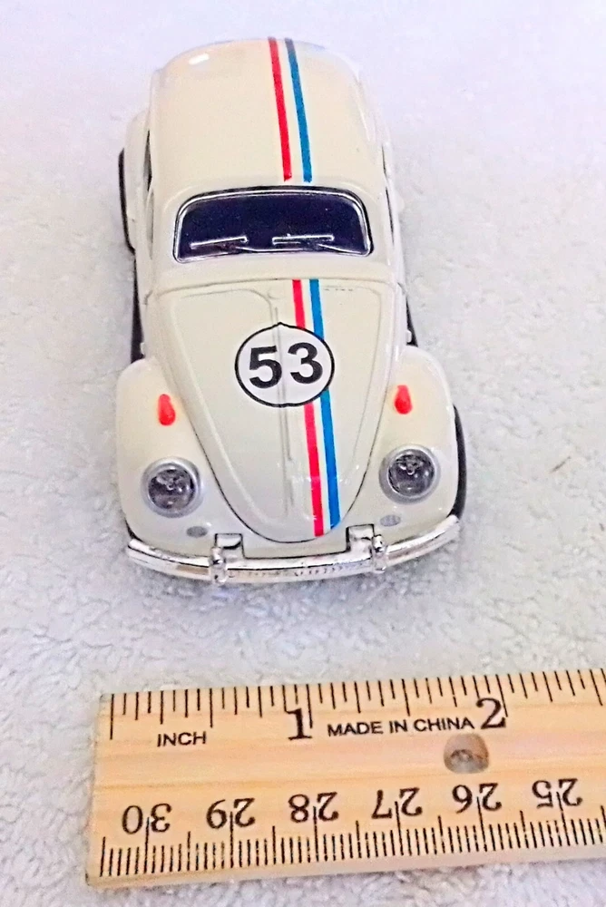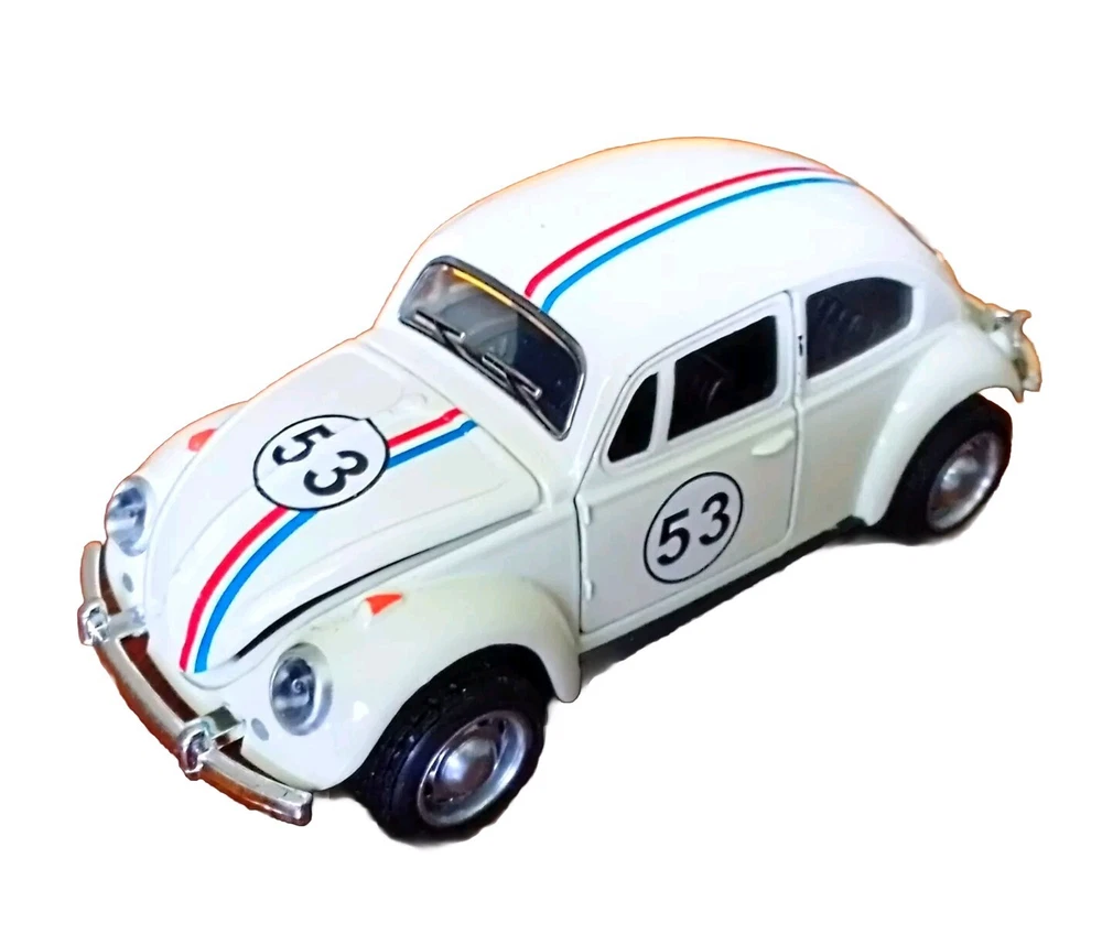 2024 White Cream Color #53 VW BEETLE Pull Back Powered Action 1:36 Diecast Car. Nice Colors & Details Modeled After the Original VW Car in the Popular 1969 Movie HERBIE THE LOVE BUG. Brand New Unopened Box. NOTE: This #53 VW Beetle is not an officially licensed item but is very similar to the actual car from the Herbie The Love Bug movie. The actual white cream color depends on lighting but I think photo# 1 shows color the best. The pictures of the car shown are stock photos of the same car. The pull back spring motor moves the car at least 12 feet on a smooth level surface. The car is made of mostly metal for the body & plastic for the bottom & interior detail. This nice cream color #53 VW Beetle car has nice colors, chrome color details & lots of other great features. The solid & heavy diecast construction with rubber like tires make this classic VW Beetle a great addition to your collection. It measures about 4.9" long x 1.85" wide x 1.9" high. The front hood opens to show a spare tires inside. The box has some minor creases & bends but overall is in OK condition. See photos for more details. Shipped with USPS Ground Advantage