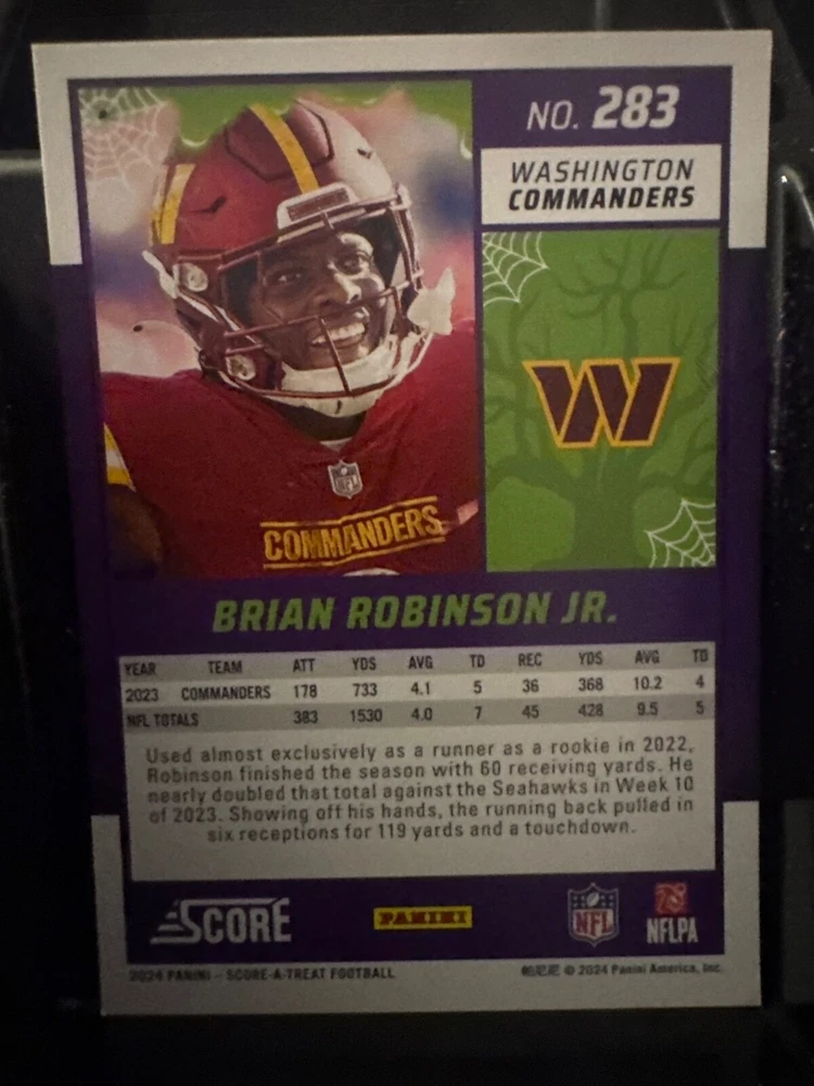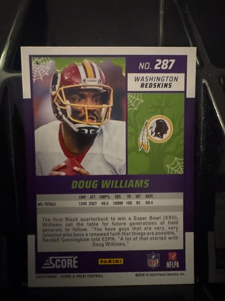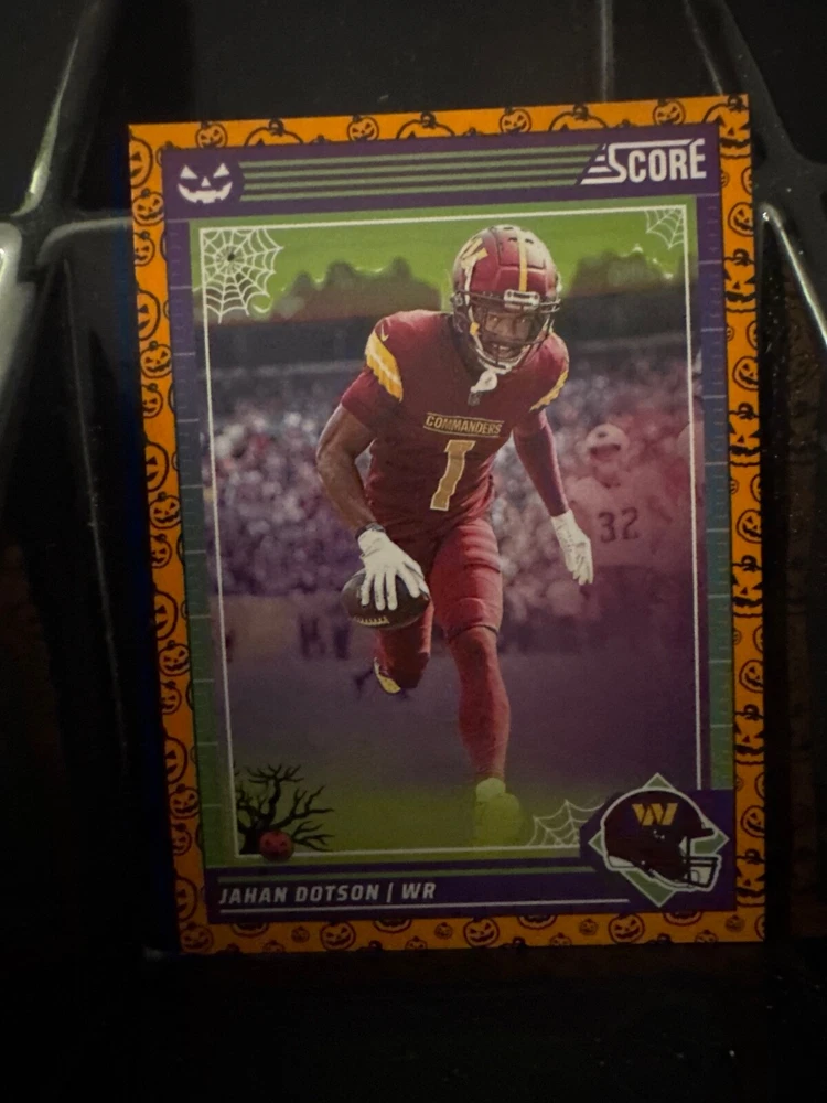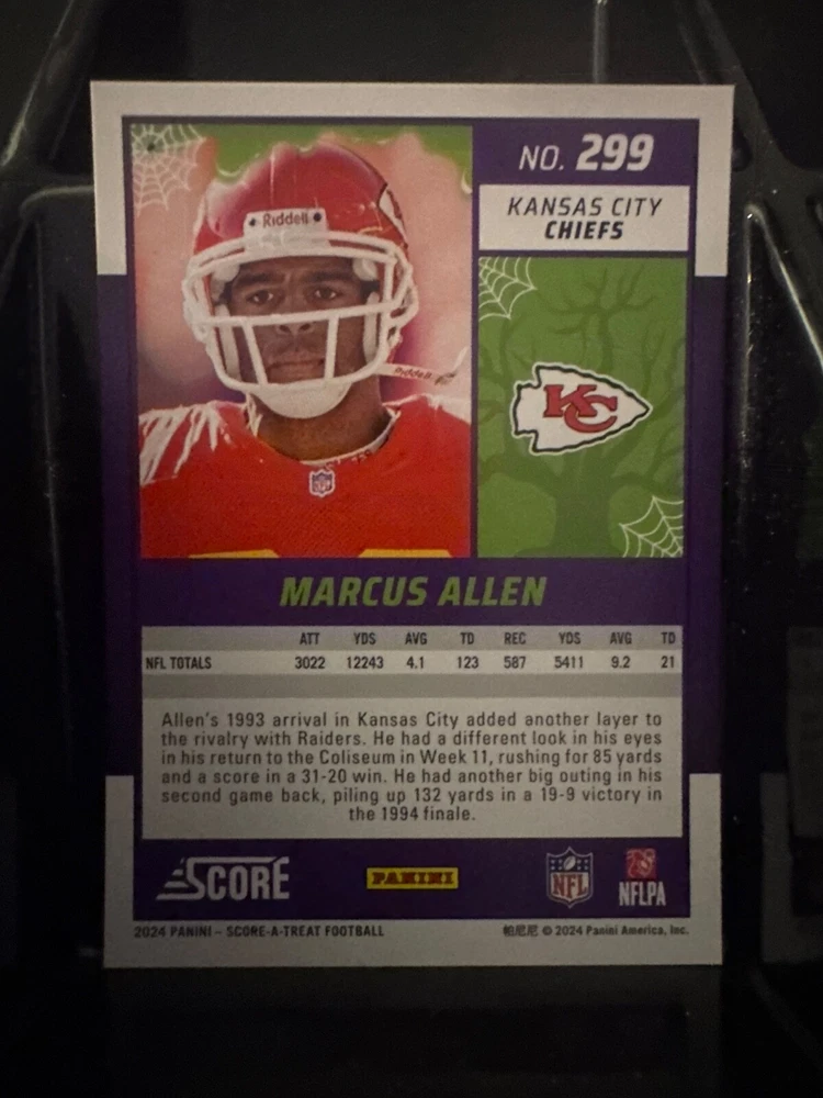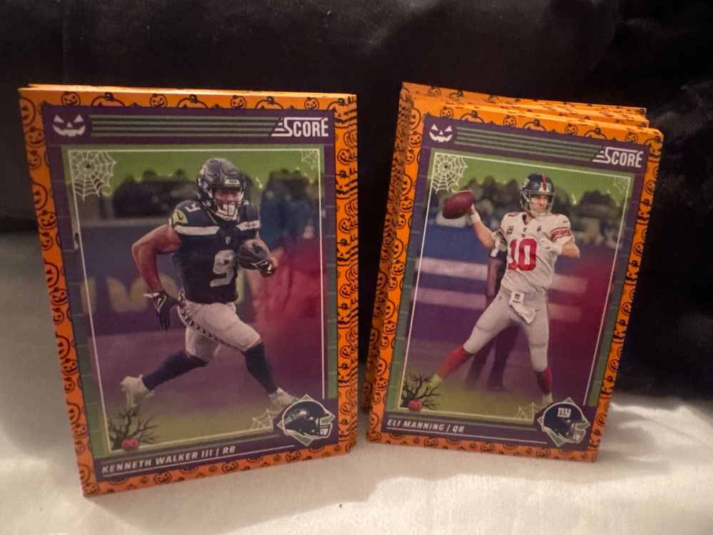 Complete your set of 2024 Score A Treat Football trading cards with the Green Bats parallel/variety. This card features some of the most exciting players in the National Football League (NFL), including Aaron Donald, Taysom Hill, and Randy Moss. The card is an original, licensed reprint from Panini and is part of the base set. The card number is 151-300 and it is a standard size for sports trading cards. The language is in English and the cards were manufactured in the United States. This card is a great addition to any football fan's collection, especially those who are fans of the San Francisco 49ers, Houston Texans, or Philadelphia Eagles.