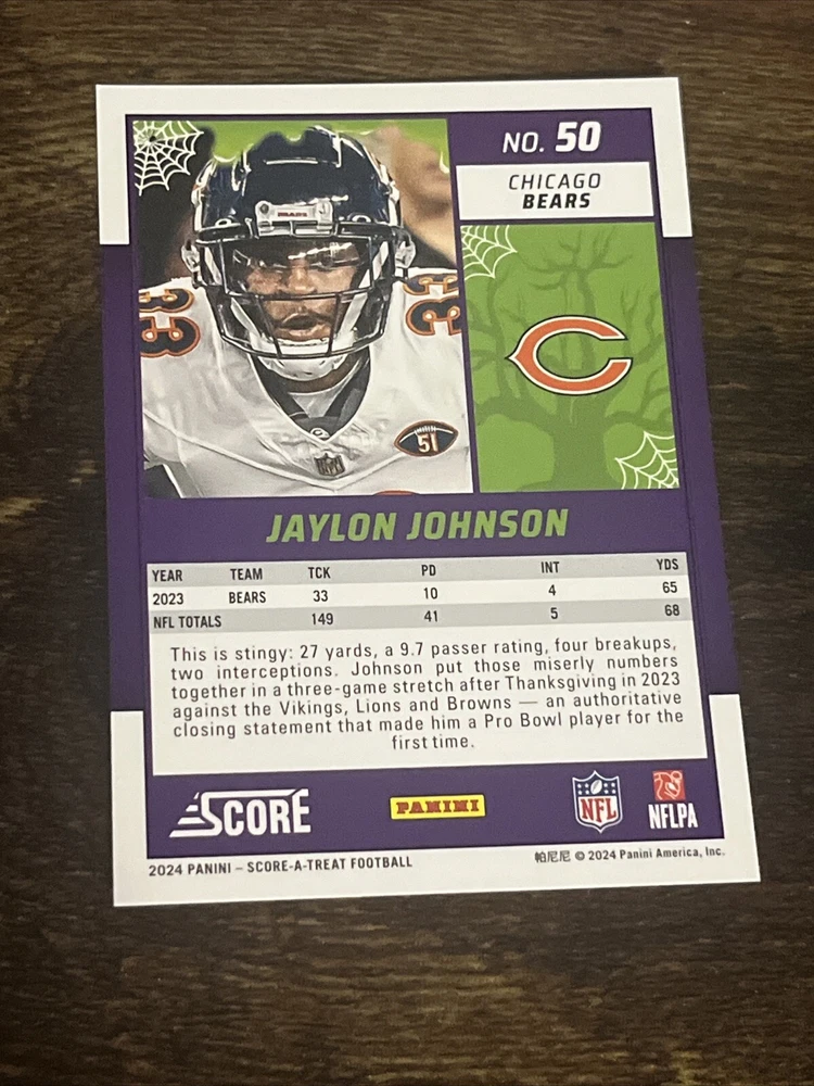 2024 Score-A-Treat Orange Pumpkins #50 Jaylon Johnson Chicago Bears S3576*