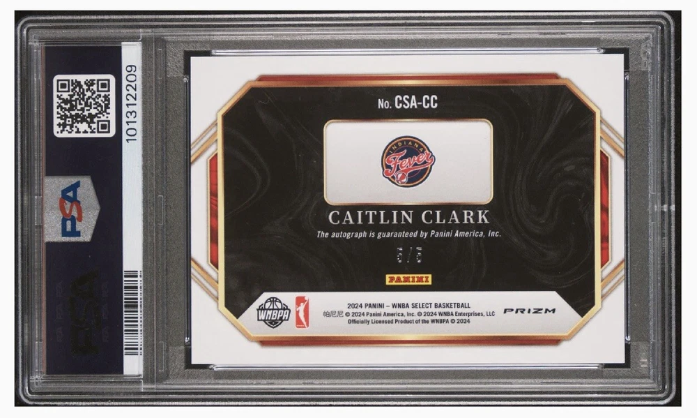 2024 Select WNBA Caitlin Clark Black/Gold Auto 5/5 PSA 10!. Condition is Graded. Shipped with USPS Ground Advantage.