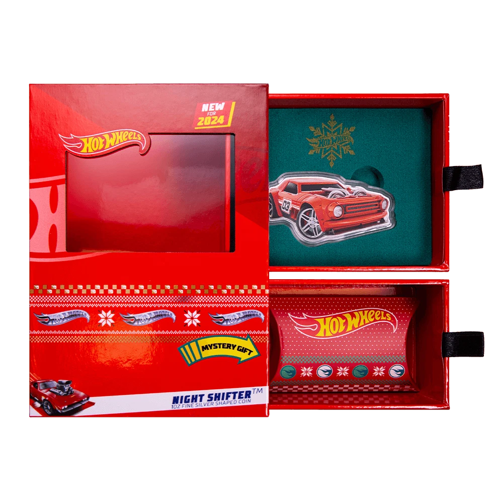FREE SHIPPING ON DOMESTIC ORDERS New releases Deals Exclusives Bullion Gold Graded Licensed Standing behind our products & our name for over a century SINCE 1915 SHOP BY CATEGORY Animal Theme Art Coins Coin Sets Comics, Notes, & Foils Deals Famous Figures & Landmarks Gold Coins GR Reserve Exclusives Graded Coins Holiday Theme Licensed Products Lunar Calendar Nature Coins Premium Bullion Rare Certificate Numbers Shaped Coins Warriors & Gods Other PARTNERS & AFFILIATIONS STORE NEWSLETTER Add us to your Favorites and receive exclusive emails about new items and special promotions! Sign up 2024 Solomon Islands Hot Wheels Night Shifter Mystery Box 1oz Silver Coin Product Description An original Hot Wheels™ design, the Night Shifter™ was inspired by the mechanical and sheer raw characteristics of high-performance race cars. The Night Shifter™ is kitted out with twin turbo-chargers and double fuel tanks fabricated from military aircraft. The Night Shifter™ is featured on an engraved 1oz pure silver legal tender coin with glossy holiday colors. Each box comes with one of four special souvenir pins of other “OG” Hot Wheels™ cars. Which one will you get?! Officially licensed Hot Wheels™ holiday edition of the Night Shifter™ as a shaped legal tender coin! Colorized with texture and a glossy finish! Individually serialized and housed within a custom capsule Comes with one of four officially licensed Hot Wheels™ souvenir pins! All previous Hot Wheels™ coin issues SOLD OUT! Contact Shipping Payment Returns To contact our Customer Service Team, simply click the button here and our Customer Service team will be happy to assist. Domestic Shipping Options - Free shipping USPS Ground Advantage UPS Ground Saver International Shipping Options – Calculated USPS Priority Mail International UPS Worldwide Expedited UPS Worldwide Saver UPS Standard to Canada Handling time Will ship within 1 business day of receiving cleared payment. Ship From Location Attleboro, Massachusetts, 02703, United States Note to international buyers The item price and shipping charges do not include import duties, import taxes, and customs clearance fees. These charges are the buyer's responsibility. Please check with your local customs office to determine what these additional charges may be prior to bidding or purchasing an item. If your order is returned to GR Reserve due to your refusal to pay duties or taxes, or if the carrier (for example, Federal Express or UPS) was unable to deliver your order, you agree you are responsible for any return shipping fees, additional duties, or applicable taxes for returning the package back to GR Reserve. In addition, if your package is returned to GR Reserve, we will not reship your order unless and until we are paid in full for any return shipping costs, duties, taxes we have had to pay or advance for you as well as any subsequent re-ship fees back to you. Immediate payment is required upon selecting "Buy It Now" or upon checking out through the cart. We accept payment via U.S. PayPal accounts and all Major Credit Cards, Debit Cards & Google Pay. We are legally required to collect sales tax in those states and localities where we maintain a physical presence. The applicable amount of sales tax charged to an order will be calculated based on the shipment destination's state and local sales tax laws. Thank you for shopping with us on eBay! Standard Other eBay Mastercard® Earn up to 5x points when you use your eBay Mastercard®. Learn more GR Reserve’s return, refund, and exchange policy is limited to (30) business days from the date that you received your item. If you find you have received a defective item, please contact us, and include detailed photos. GR Reserve will then assess whether the product is eligible for a return, refund, or exchange. For approved exchanges, you must follow all instructions provided by us, including packaging the product appropriately. We are responsible for the cost of return domestic shipping and the risk of loss during the return shipment. Refer to eBay Return policy for more details. You are covered by the eBay Money Back Guarantee if you receive an item that is not as described in the listing. Free Shipping On all domestic order 100% SATISFACTION GUARANTEED About Feedback GR Reserve - Attleboro, MA 02703