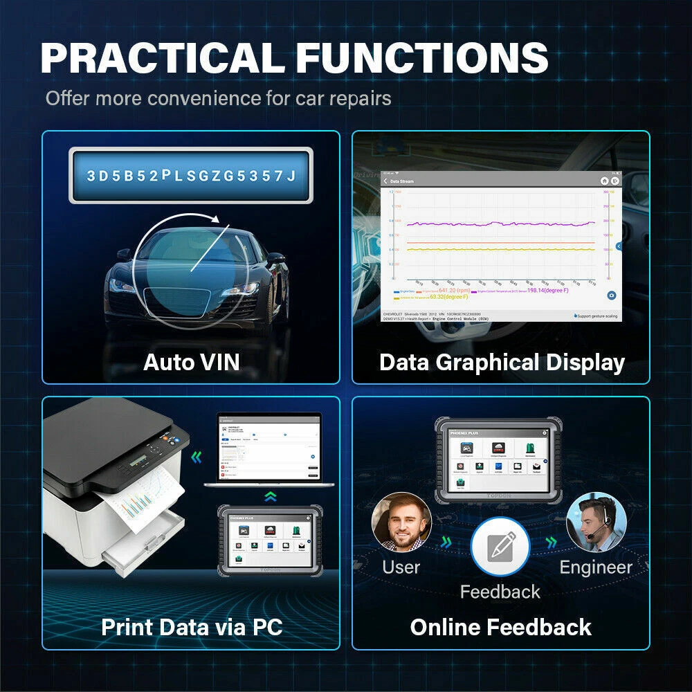 2024 TOPDON Phoenix Plus Car Diagnostic Scanner Tool Topology map Key Coding 2024 Topdon Phoenix Plus Full System Diagnostic Scanner with 2 Years Free Update --10-inch HD IPS Touch Screen+ Car full system Scanner +bluetooth/wifi +41+ Special service+ADAS Calibration+E~CU Coding+Active test+ Android 10 OS + 64GB Memory +Quad-Core 2.0GHz processor+ 2 Years free update online-- 2024 Topdon Phoenix Plus Professional Modular Diagnostic Tool CAR REPAIR SHOPS & MECHANICS 's First Choice !!! You Deserve to Have a Topdon Phoenix Plus 1.Powerful Quad-Core 2.0GHz processor with 4G+64G Hardware Configuration 2.OE-Level Wireless Intelligent Diagnostics, covering more than 100 car makes 3.Unique Modular Design, supporting up to 8 functional modules for any application scenarios 4.Android 10 OS running on 10-inch HD IPS Touch Screen 5.Supporting 41+ Service Reset Functions, more to cover soon 6.Topological Graph 7.Supporting ADAS Calibration 8.Remote Technical Support via TeamViewer 3. 41+ Special functions : Topdon Phoenix Plus supports matching, coding, programming of most vehicles' programable modules,and most commonly used maintenance and reset functions, namely, Oil Reset, Elec. Throttle Adaption,IMMO Service,Injector Coding,Break-pad Reset, Steering Angle Reset, ABS Bleeding,AFS Reset,Battery Matching,A/T Learning, DPF Regeneration, EGR Adaption, TPMS Reset, Sunroof lnitialization,Suspension Matching, Gear Learning, SRS Reset, ODO Reset, AdBlue Reset, A/F Reset,CoolantBleeding, Language Change, NOx Sensor Reset, Seat Calibration, Stop/Start Reset,Transport Mode,Tyre Reset, Windows Calibration. 4.12 Data Graphs shows in the Same Screen It is better you can compare and Analysis the Data , easy to find the problem of the car ! 5.AutoAuth Access, Communicate with FCA SGW without Bypass Cable Starting in 2018, FCA vehicles have been equipped with a security gateway firewall, i.e. SGW Authentication System (SGM) which is developed to secure the vehicle’s control systems against security threats and issues. Yet now you can communicate with the FCA SGW Authentication System and bypass the SGM with our diagnostic tool TOPDON Phoenix Plus to be able to run OE-level diagnostics and bi-directionals on SGW-equipped vehicles: Available for 2017 and later FCA vehicles including Chrysler, Dodge, Jeep, Alfa Romeo, and Fiat. Your Phoenix Plus diagnostic tablet needs to have the AutoAuth subscription. The diagnostic scanner needs to have the latest version of diagnostic software. The scan tool must be connected to the internet to communicate with the FCA SGW Authentication System. **There’ll be yearly subscriptions fees required by AutoAuth. 6. Actuation Test: This function is used to test whether the execution components in the electronic control system can work 7. E~CU CODING: The Coding function is used to re-flash the vehicle control modules, it allows you to reprogram adaptive data for certain components after making repairs or replacements. Support Full system diagnostic Engines/Auto Transmission/SRSs/Immobilizer/Key Coding/ABS/Cruise Control/Instruments/ Self Leveling Suspension systems/Seats/Doors/Gateway/Steering Angle/Air Suspension/Body Systems/Electronic Power Steering & Motor Assisted/Power Steering/Tyre Pressure/Rain Sensors/4WD System/Stabilizer/Intelligent Parking Assist/Door Motors/Audio Systems/Air Conditioning/Tiptronic/Anti Theft/Soft Top/Headlamp Leveling/Central Locking/Automatic Clutch/ DPF Reset/Electric Windows/Plip Programming/Heated Rear Window/Xenon Headlights/Wash Wipe/Fuel Burning Heater/Transfer Box/Seat Memory/Oil Life Service Reset/Sliding Doors/Electronic Throttle/Navigation System/Rollover Sensor/Cruise Control/ Multi Function Steering Wheel/Aux Heating/Electronic Parking Brake/Clutch Electronics etc.( Great for car repair shops and mechanics to improve business) Service functions Topdon Phoenix Plus has 28 service functions which allows you to reset various systems in your vehicle. support more function than other scanners priced similarly : 1.Oil Reset The lightening of the car maintenance light indicates that the vehicle needs maintenance.Reset them ileage or driving time to zero after the maintenance, so the maintenance light will go out and the system will start a new maintenance cycle. 2.Elec.Throttle Adaption Elec. Throttle Adaption is to utilize the car decoder to initialize the throttle actuator so that the learning value of the E~CU returns to the initial state.By doing these, the movement of the throttle (or idle motor)can be more accurately controlled, thus adjust the intake volume. 3.Steering Angle Reset To reset the steering angle, first find the relative zero point position for the car to drive in straight line.Taking this position as reference, the E~CU can calculate the accurate angle for left and right steering.After replacing the steering angle position sensor, replacing steering mechanical parts (such as steering gearbox, steering column, end tie rod, steering knuckle), performing four-wheel alignment, or recovering car body, you must reset the steering angle. 4.Battery Matching This function enables you to perform a resetting operation on the monitoring unit of vehicle battery, in which the original low battery fault information will be cleared and battery matching will be done. 5.ABS Bleeding When the ABS contains air, the ABS bleeding function must be performed to bleed the brake system to restore ABS brake sensitivity. lf the ABS computer,ABS pump, brake master cylinder, brake cylinder, brake line, or brake fluid is replaced, the ABS bleeding function must be performed to bleed the ABS. 6.Break-pad Reset lf the brake pad wears the brake pad sense line, the brake pad sense line sends a signal sense line to the on-board computer to replace the brake pad.After replacing the brake pad, you must reset the brake pad.Otherwise, the car alarms. 7.DPF Regeneration DPF regeneration is used to clear PM (Particulate Matter) from the DPF filter through continuous co