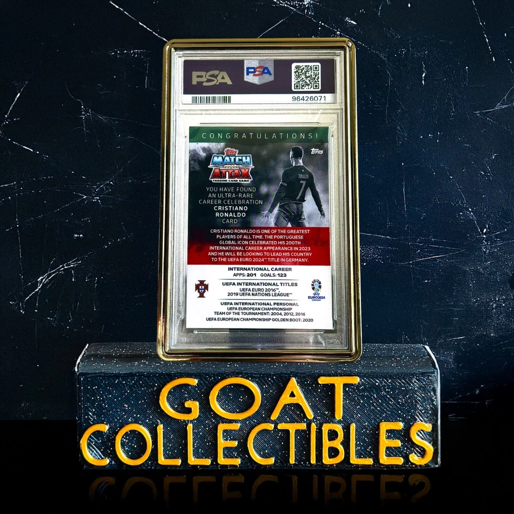 GOAT COLLECTIBLES L O S A N G E L E S S T O R E Product Information You will receive everything show in the picture above. Please refer to the pictures above for the condition of the items. If there are any issues with what you received, please contact us! Disclaimer: Please be advised that the Gold PSA Slab Guard is not part of this sale. Shipping USPS Ground Advantage within the United States! Please allow 1-2 business days from receipt of payment for your order to ship. Most orders will be shipped via USPS and delivery times will vary depending on the time of year and location. Every purchase comes with a penny sleeve, card holder & for added protection. Returns We do not accept returns unless the cards that arrived are not as described. International Buyers eBay handles international orders and will be shipped via their global shipping hub. Generally, orders should arrive within 14 business days. However, please note that transit times for international orders vary greatly and can take up to 6-8 weeks. Import duties/customs are not included in the price and they are the responsibility of the buyer. We advise checking with your local postal service before purchasing to get an estimate on what the duties are before purchasing Contact Us We highly value our feedback and would appreciate it if you could leave a positive review with your purchase. In the event that you are unhappy with your purchase, please contact us before leaving a negative feedback. We will work with all customers to make sure they are satisfied! If you have any other questions, please feel free to contact us and thank you for shopping with us!