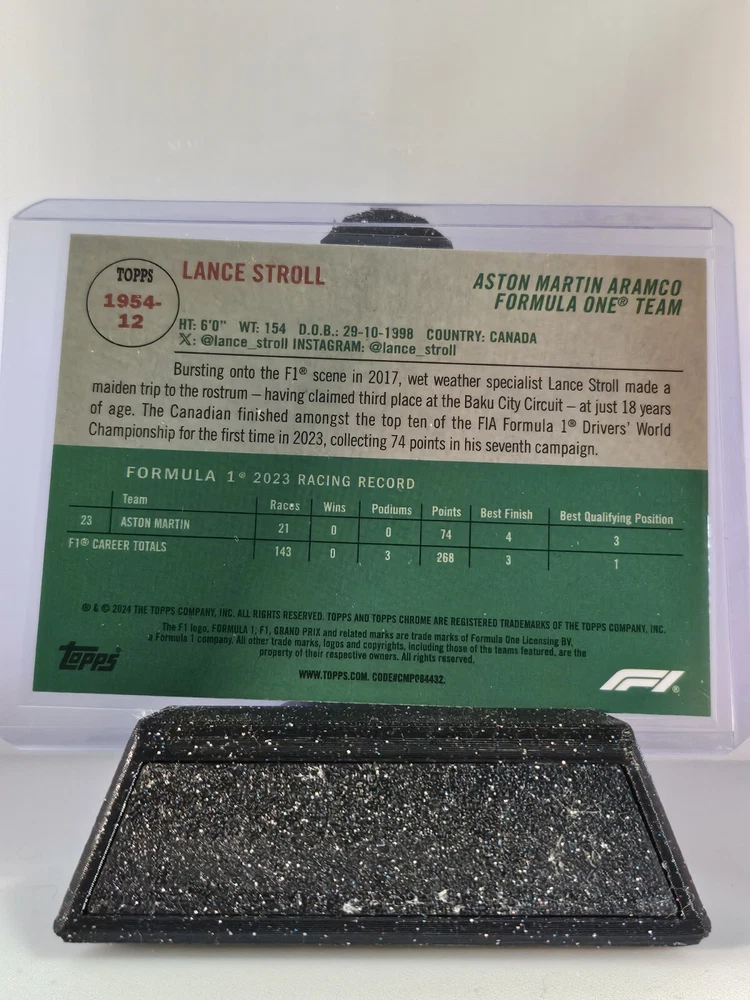 This 2024 Topps Chrome Formula 1 trading card features Lance Stroll, a talented racing athlete. The card is made of high-quality card stock and has a standard size. It is an original, licensed reprint and belongs to the 2024 Topps Chrome set. The card is a refractor parallel/variety and has an English language. It was manufactured by Topps in the United States and is an insert card. The card features a team that can be found in the title and is related to the Formula 1 event/tournament. The card is not autographed and is not vintage.