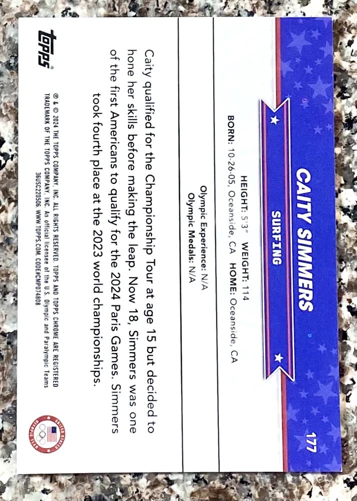 Explore the pinnacle of sports memorabilia with the 2024 Topps Chrome Olympic and Paralympic Hopefuls Set. This comprehensive collection features cards numbered 1-200, highlighting a diverse array of athletes from Quinn Sullivan to Xander Schauffele, all vying for a spot on the prestigious U.S. Olympic & Paralympic Team. Whether you're a fan of climbing, surfing, or any other sport, this set captures the essence of the games and the dedication of the participants. Each card is a testament to the athletes' potential and Topps' commitment to quality, with the sought-after refractor finish that adds a shimmering touch to each collectible. Dive into the 2024 season with this unique selection of sports trading cards and own a piece of Olympic and Paralympic history.