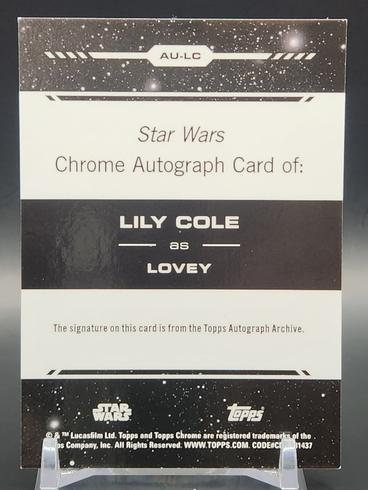 2024 Topps Chrome Star Wars Lovey /199 Lily Cole Auto Refractor AU-LC You are bidding on the item listed in the title and pictures above. For condition of the item, please refer to the item photos and post description. All items will be shipped USPS Ground Advantage.