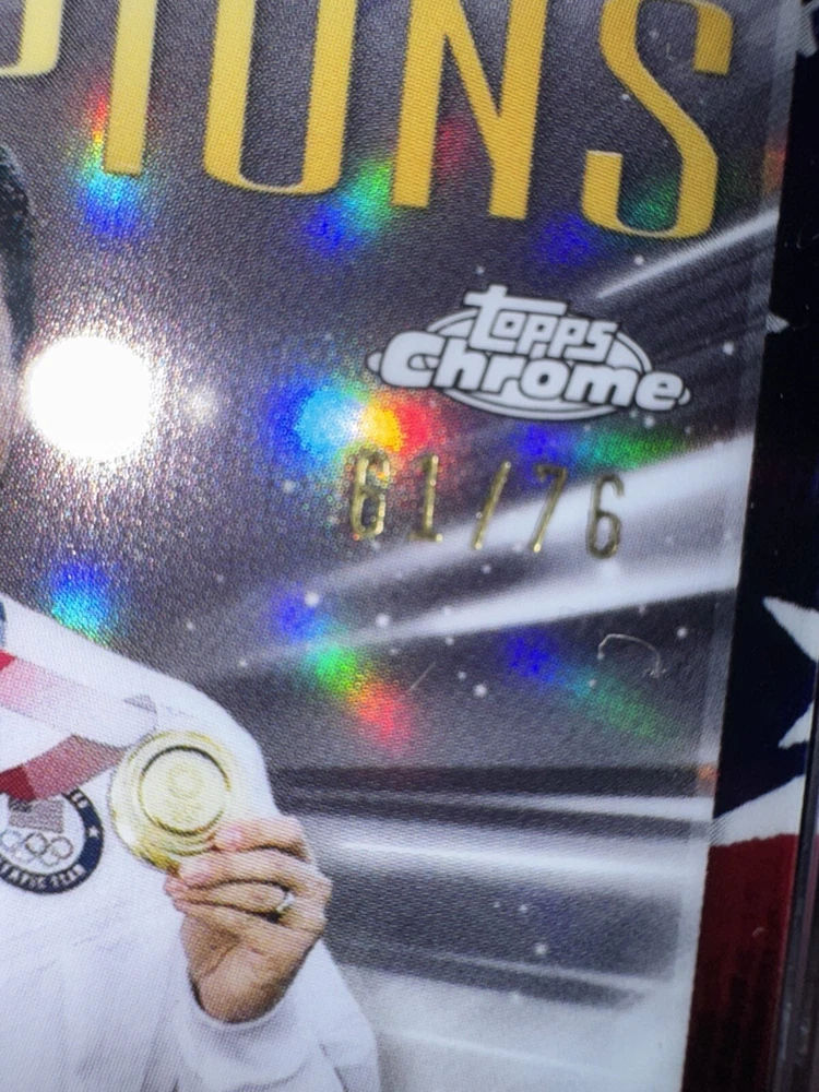 Capture a piece of sports history with this 2024 Topps Chrome US Olympic Xander Schauffele Flag Auto RC, card number OCA-XS. This collectible features the renowned golfer Xander Schauffele and is part of the prestigious 2024 Topps Chrome set. As a standout item, it boasts a hard-signed autograph by Schauffele himself, authenticated by Topps for unquestionable legitimacy. This rookie card is not just a single, it's a gem from the PGA Tour, celebrating the Olympic Games season. With a limited print run of just 76, this card is numbered 61 and has been professionally graded by PSA with a perfect score of 10. It's a chromium-finished treasure, a must-have for golf enthusiasts and serious collectors alike.