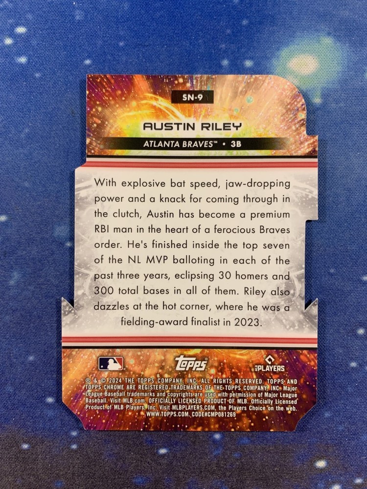 This Austin Riley Stella Nova case hit is a must-have for any collector! The cosmic chrome design pops with vibrant colors, and the SP rarity makes it a standout. Arrived securely sleeved and toploaded—exactly as described. The condition looks sharp in-hand, perfect for my PC. Highly recommend grabbing one before they’re gone!