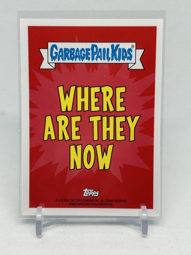 The product is a 2024 Topps Garbage Pail Kids Chrome 7 #267a Tongue Tied Tina Blue Wave/75 trading card. This non-sport trading card is part of the Garbage Pail Kids franchise manufactured by Topps. It features a green parallel/variety design, making it a rare and sought-after collectible for fans and collectors of the series.