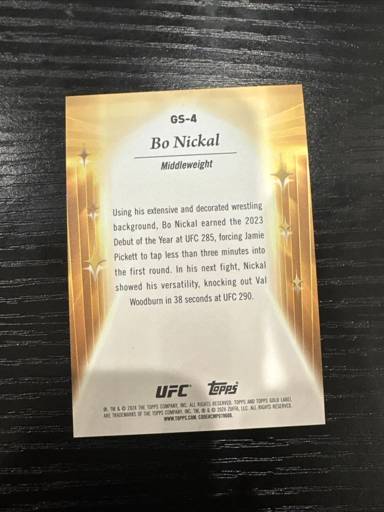 2024 Topps Gold label UFC Bo Nickal Golden Stars GS-4. Condition is Ungraded. Shipped with eBay Standard Envelope for Eligible Items up to $20.