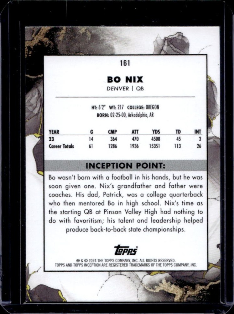 2024 Topps Inception Bo Nix Rookie RC #161 Broncos