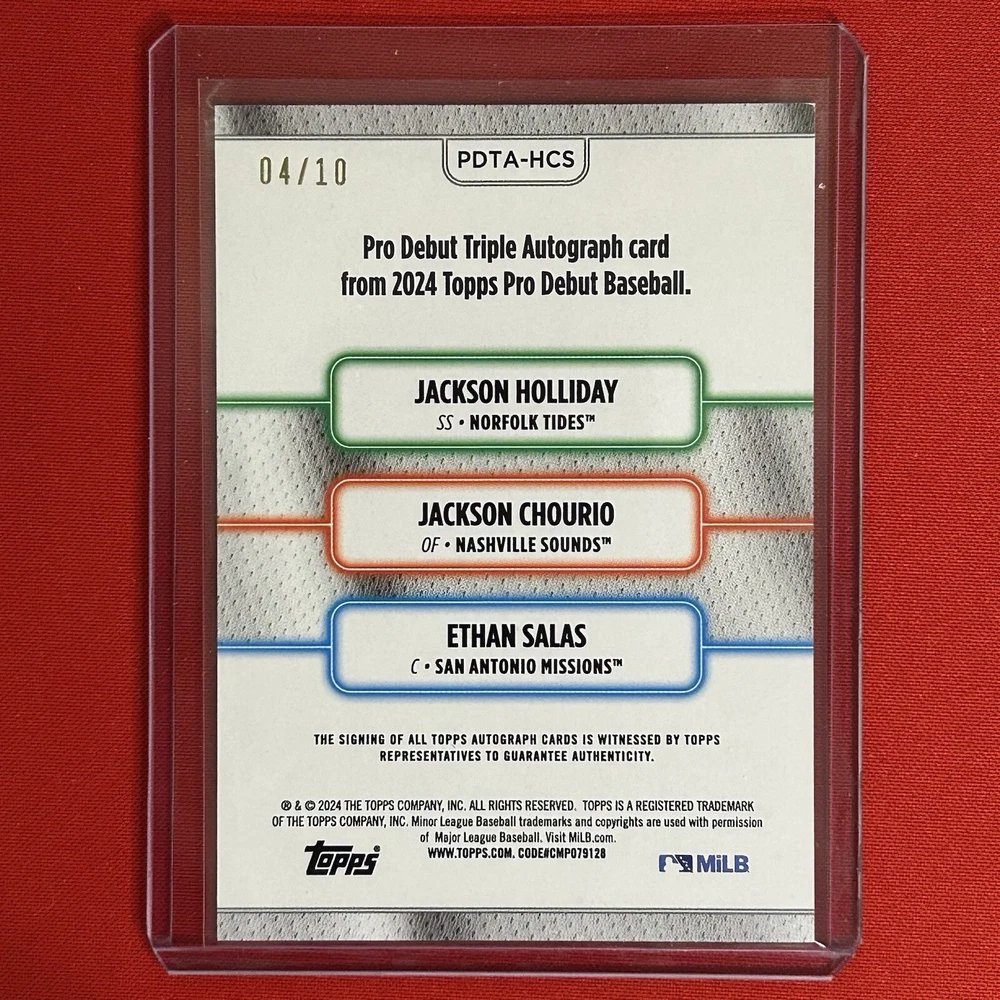 Freshly pulled out of 2024 Topps Pro Debut. If your giving up on Holliday your mistaken. Chourio is a stud we all know this and Salas has big things coming.