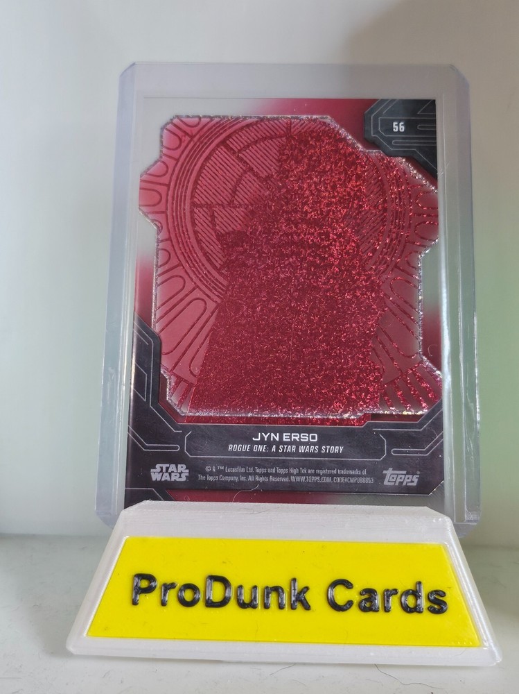 **DUE TO THE INEFFICIENCY OF THE USPS, ALL ORDERS WILL BE SHIPPED USING UPS GROUND SAVER.**The 2024 Topps Star Wars High-Tek Jyn Erso Throne Room Diffractor Red 3/5 trading card is a highly collectible non-sport trading card featuring the character Jyn Erso from the Star Wars franchise. This card is a rare Red parallel/variety with a limited serial number of 3 out of 5, making it quite valuable to collectors. The card showcases Felicity Jones, the actress who portrayed Jyn Erso, and is part of the Star Wars High-Tek set, adding to its appeal for fans of the iconic franchise.