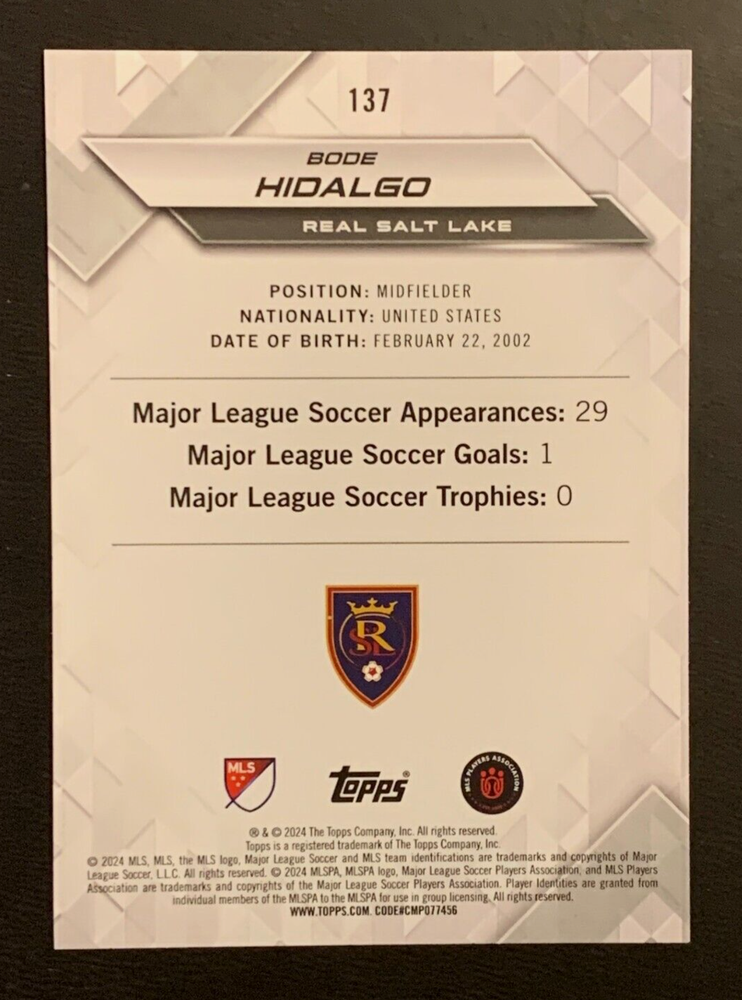 2024 Topps Superstars MLS #137 | BODE HIDALGO | RC Rookie Card | Real Salt Lake; YELLOW Parallel (Common)