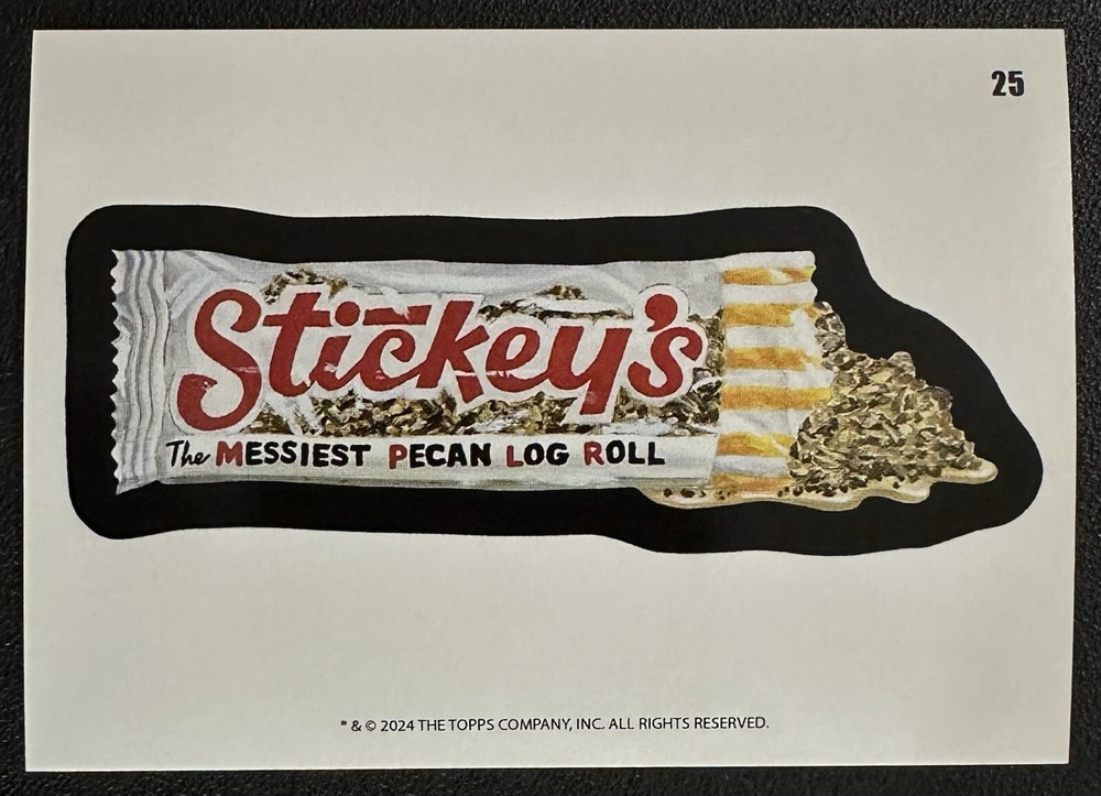 2024 Topps Wacky Packages ANS #25 STICKEYS cards coupon in Toploader parody card Your card will be put in an Ultra•Pro Card Sleeve, a Toploader, and then put into a Team Bag 2024 Wacky Packages All-New Series Overview Wacky Packages ALL NEW SERIES has returned for a 2024 release exclusively on Topps.com. This set features 50 brand new gags done by some of your favorite Wacky Packages artists. Look for Sketch cards, Foil Parallels, Coupons and much more - a laugh riot in every pack! 2024 Wacky Packages All-New Series Checklist 100 Sticker Base Set (50 Puzzle Backs & 50 Coupon Backs) 1 Sticker Base Crunch Bearings Puzzle - Crunch 1 Sticker Base Crunch Bearings Coupon 2 Sticker Base Quasar Oats Puzzle - Crunch 2 Sticker Base Quasar Oats Coupon 3 Sticker Base Simply Strange Puzzle - Crunch 3 Sticker Base Simply Strange Coupon 4 Sticker Base Fartnite Puzzle - Crunch 4 Sticker Base Fartnite Coupon 5 Sticker Base Perk Puzzle - Crunch 5 Sticker Base Perk Coupon 6 Sticker Base Glands Puzzle - Crunch 6 Sticker Base Glands Coupon 7 Sticker Base Larva Bar Puzzle - Crunch 7 Sticker Base Larva Bar Coupon 8 Sticker Base Ache A Lot Puzzle - Crunch 8 Sticker Base Ache A Lot Coupon 9 Sticker Base Clariton Puzzle - Crunch 9 Sticker Base Clariton Coupon 10 Sticker Base Prowrestle Puzzle - My Sickle 10 Sticker Base Prowrestle Coupon 11 Sticker Base My Sickle Puzzle - My Sickle 11 Sticker Base My Sickle Coupon 12 Sticker Base Singles Puzzle - My Sickle 12 Sticker Base Singles Coupon 13 Sticker Base Mtn Chew Puzzle - My Sickle 13 Sticker Base Mtn Chew Coupon 14 Sticker Base Moo Pie Puzzle - My Sickle 14 Sticker Base Moo Pie Coupon 15 Sticker Base Sloppecito Puzzle - My Sickle 15 Sticker Base Sloppecito Coupon 16 Sticker Base Bear Heads Puzzle - My Sickle 16 Sticker Base Bear Heads Coupon 17 Sticker Base Plucky Charms Puzzle - My Sickle 17 Sticker Base Plucky Charms Coupon 18 Sticker Base Clowny Puzzle - My Sickle 18 Sticker Base Clowny Coupon 19 Sticker Base Hive Nights Puzzle - Starbugs 19 Sticker Base Hive Nights Coupon 20 Sticker Base In Prison Puzzle - Starbugs 20 Sticker Base In Prison Coupon 21 Sticker Base Jest Puzzle - Starbugs 21 Sticker Base Jest Coupon 22 Sticker Base Jokey Puzzle - Starbugs 22 Sticker Base Jokey Coupon 23 Sticker Base Bubble Bee Puzzle - Starbugs 23 Sticker Base Bubble Bee Coupon 24 Sticker Base Oareo Puzzle - Starbugs 24 Sticker Base Oareo Coupon 25 Sticker Base Stickeys Puzzle - Starbugs 25 Sticker Base Stickeys Coupon 26 Sticker Base Noosance Puzzle - Starbugs 26 Sticker Base Noosance Coupon 27 Sticker Base Starbugs Puzzle - Starbugs 27 Sticker Base Starbugs Coupon 28 Sticker Base Muddy Babbies Puzzle - Dead's 28 Sticker Base Muddy Babbies Coupon 29 Sticker Base Sugar Caddy Puzzle - Dead's 29 Sticker Base Sugar Caddy Coupon 30 Sticker Base Hot Snails Puzzle - Dead's 30 Sticker Base Hot Snails Coupon 31 Sticker Base Suffer Puzzle - Dead's 31 Sticker Base Suffer Coupon 32 Sticker Base Spawn Puzzle - Dead's 32 Sticker Base Spawn Coupon 33 Sticker Base Tombleron Puzzle - Dead's 33 Sticker Base Tombleron Coupon 34 Sticker Base Dead's Puzzle - Dead's 34 Sticker Base Dead's Coupon 35 Sticker Base Rot Shot Puzzle - Dead's 35 Sticker Base Rot Shot Coupon 36 Sticker Base Pop Coroners Puzzle - Dead's 36 Sticker Base Pop Coroners Coupon 37 Sticker Base Play-Bro Puzzle - Kooky Crisp 37 Sticker Base Play-Bro Coupon 38 Sticker Base Ate 1 Puzzle - Kooky Crisp 38 Sticker Base Ate 1 Coupon 39 Sticker Base Bagel Frights Puzzle - Kooky Crisp 39 Sticker Base Bagel Frights Coupon 40 Sticker Base Nix Puzzle - Kooky Crisp 40 Sticker Base Nix Coupon 41 Sticker Base Bite Guard Puzzle - Kooky Crisp 41 Sticker Base Bite Guard Coupon 42 Sticker Base Hot Logs Puzzle - Kooky Crisp 42 Sticker Base Hot Logs Coupon 43 Sticker Base Kooky Crisp Puzzle - Kooky Crisp 43 Sticker Base Kooky Crisp Coupon 44 Sticker Base Ring Ding Puzzle - Kooky Crisp 44 Sticker Base Ring Ding Coupon 45 Sticker Base Spatial K Puzzle - Kooky Crisp 45 Sticker Base Spatial K Coupon 46 Sticker Base Snails Finished Puzzle 1 46 Sticker Base Snails Coupon 47 Sticker Base Pet Finished Puzzle 2 47 Sticker Base Pet Coupon 48 Sticker Base Blown Pop Finished Puzzle 3 48 Sticker Base Blown Pop Coupon 49 Sticker Base Noscafe Finished Puzzle 4 49 Sticker Base Noscafe Coupon 50 Sticker Base L.L. Scream Finished Puzzle 5 50 Sticker Base L.L. Scream Coupon 1 18C1S Base Checklist Flashback to 74 1 Sticker Insert EvilTime 2 Sticker Insert SoftHead Lightbulbs 3 Sticker Insert Big Muc 4 Sticker Insert Creature Crackers 5 Sticker Insert Burpsi Cola 6 Sticker Insert Suffertone 7 Sticker Insert Hooky 8 Sticker Insert Pupsi 9 Sticker Insert Sunsweat 10 Sticker Insert Mud Magazine Mars Attacks Wacky Packs 1 Sticker Insert Quasar Oats 2 Sticker Insert Pet 3 Sticker Insert Noosance 4 Sticker Insert Spawn 5 Sticker Insert Simply Strange Wacky Pals Comics 1 Sticker Insert SoftHead Lightbulbs 2 Sticker Insert EvilTime 3 Sticker Insert Pupsi 4 Sticker Insert Creature Crackers 5 Sticker Insert Big Muc 6 Sticker Insert Burpsi Cola 7 Sticker Insert Imbecile Blank Crows 8 Sticker Insert 3 Mosquitoes 9 Sticker Insert Monotony 10 Sticker Insert Kentucky Fried Fingers