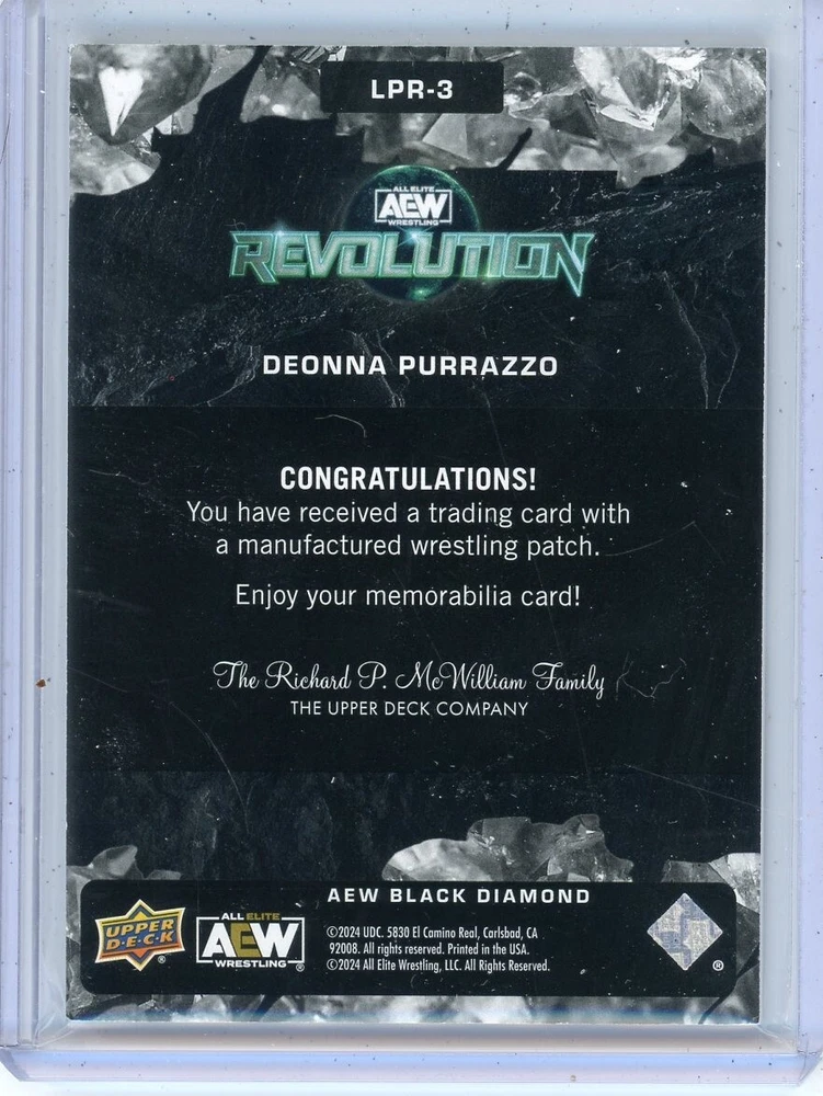 2023-24 Upper Deck AEW WRESTLING EVENT REVOLUTION LOGO PATCHES Deonna Purrazzo CARD: LPR-3 Shipping is U.S. $4.50 or Canada $14.00. Europe is $25.00 Buy multiple single cards and they all ship for this same low price. All auctions are to be paid within 72 hours of end of auction per EBAY's rules. Due to the recent change in U.S. POSTAL FEES AND REGULATIONS Minimum cost to ship to Canada is now $11.40, This is out of my control and is exact cost!!