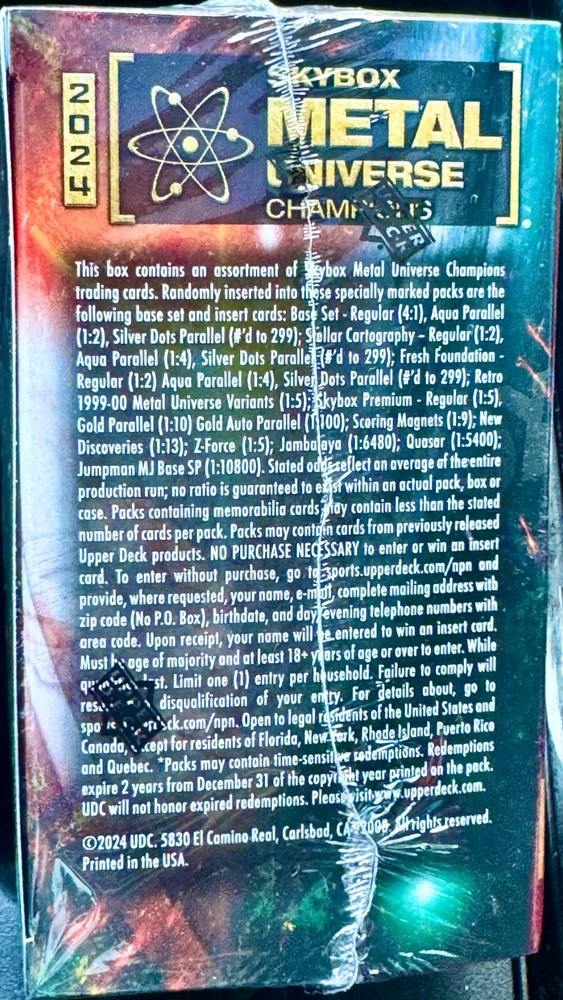 Qty. 1 - 2024 Upper Deck Skybox Metal Universe Champions - Blaster Box Features: Factory Sealed 7 cards per pack 5 packs per box Chase rare exclusive parallels!