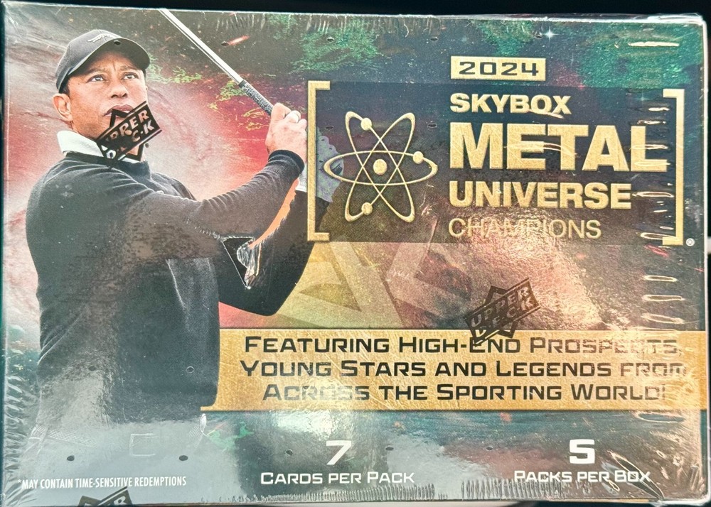 Year Manufactured: 2024 Country/Region of Manufacture: United States Language: English Type: Sports Trading Card Sport: Athletics Set: 2024 Skybox Metal Universe Champions Autographed: No Vintage: No Player/Athlete: Tiger Woods Features: Insert, Limited Edition, Parallel, Rookie Material: Card Stock Configuration: Box Number of Cards: 35 Season: 2024 Number of Boxes: 1 Card Size: Standard Manufacturer: Upper Deck