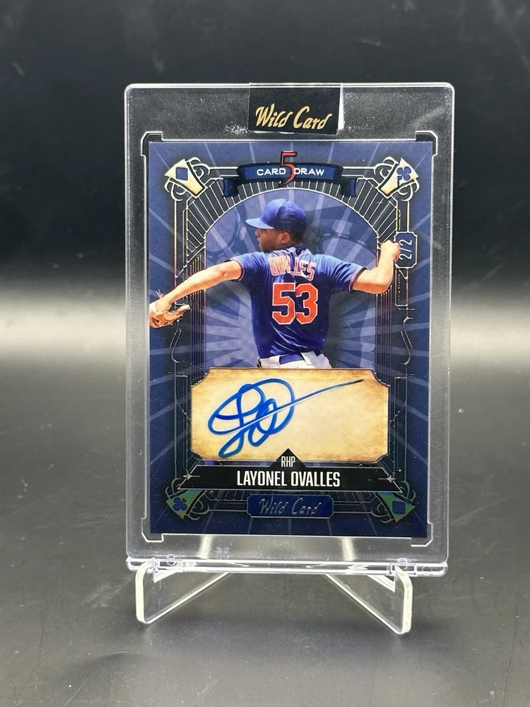 Elevate your baseball card collection with the 2024 Wild Card 5 Card Draw featuring the promising talent, Layonel Ovalles. This limited edition card, numbered #2/2, showcases Ovalles in his New York Mets gear, making it a must-have for fans and collectors alike. The blue color match design adds a distinctive touch to this already rare piece. As a rookie card, it represents the early career of an up-and-coming star. The 'Short Print' feature ensures its exclusivity. Manufactured by Wild Card in 2023, this card is a testament to Ovalles' potential and a valuable find for those who appreciate the intricacies of sports memorabilia.