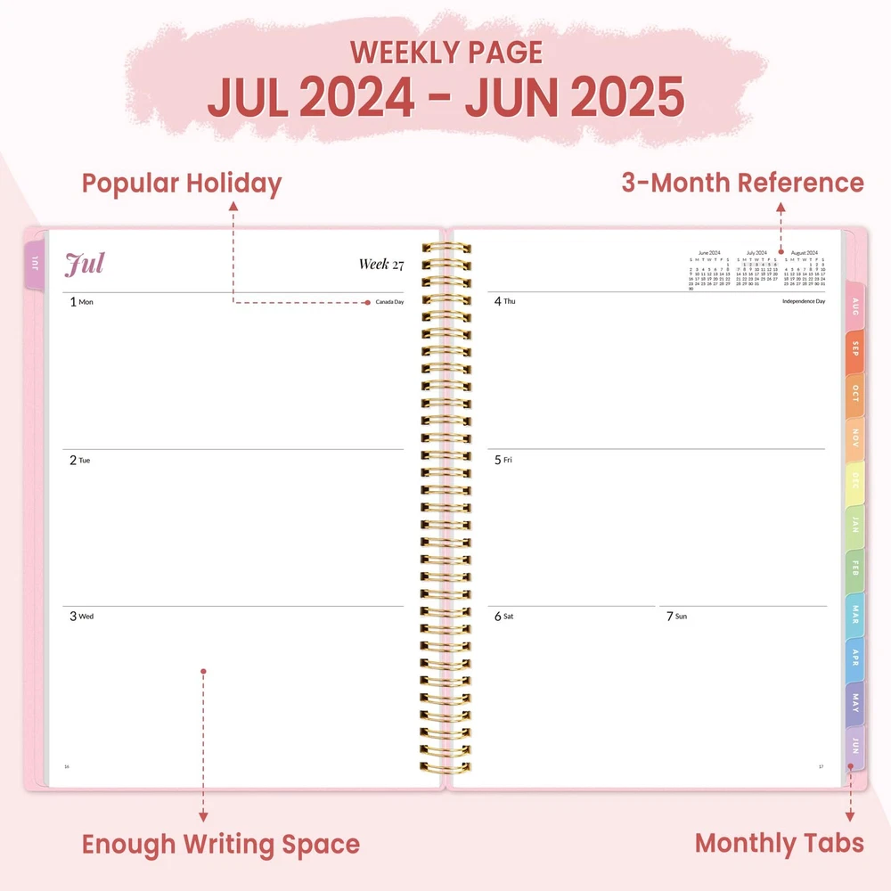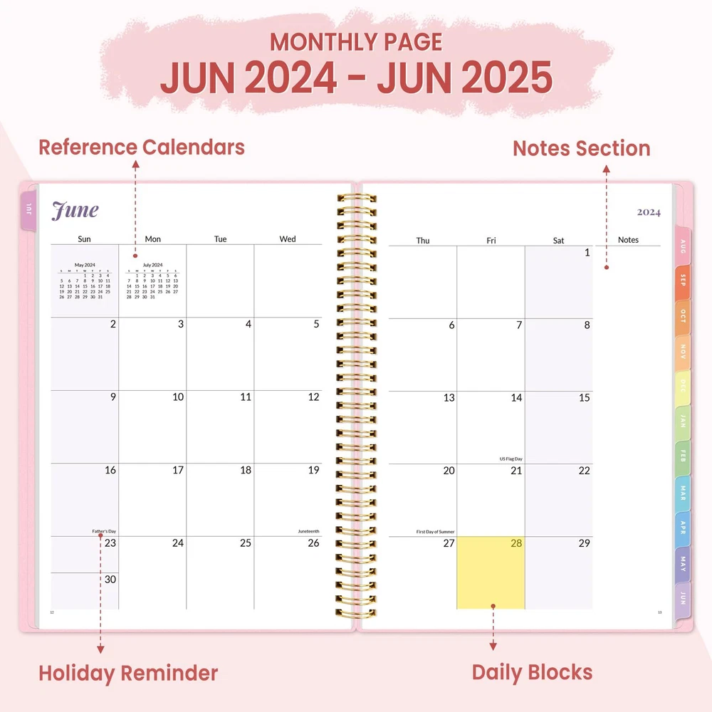 2024-2025 Academic Planner, Annecy Weekly & Monthly Planner from Jul. 2024 – Jun. 2025, 8.5"x11" School Year Daily Planner with Monthly Tab, Waterproof PVC Cover, Spiral Bound, Pocket, Bookmark, Pink Elevate your organization and productivity with the Annecy 2024-2025 Weekly and Monthly Planner. This spiral-bound planner is designed to meet all your planning needs for 2024-2025 and beyond. Whether you're a student, professional, or simply someone who values staying organized, this planner has you covered. Plan your days, weeks, and months with ease using the 2024 Weekly and Monthly Planner. It features dedicated sections for daily, weekly, and monthly planning, ensuring you can manage your time effectively. The 6.4*8.3-inch and 8.5 x 11-inch two size provides ample space for jotting down your appointments, to-do lists, and important dates. The stylish design of the Annecy planner adds a touch of elegance to your daily routine, making planning a pleasure. Crafted with high-quality materials, it offers smooth, bleed-resistant pages, so your writing stays clear and legible. The Annecy 2024 -2025 Weekly and Monthly Planner is more than just a planner; it's a tool to help you achieve your goals and dreams in the year ahead. Stay organized, reduce stress, and make every day count. Don't miss the chance to enhance your productivity and style – order your Annecy 24-25 Planner now. It's time to take control of your schedule and start the year on the right note. Make 2024-2025 your most organized and successful year yet. 2024-2025 PLANNER - From July 2024 to June 2025 with 12 months of monthly and weekly pages for easy year-round planning; 2024-2025 weekly and monthly planner includes ONE additional monthly pages (June 2024); Annecy spiral bound 8.5" x 11" Planner is large and easy to use and carry away. MONTHLY OVERVIEW – 2024-2025 monthly planner includes previous and next month reference calendars for a simple past reviewing and future planning; Notes section for important projects; Major holidays listed; Durable coated colorful tabs dividers that are tough and long-lasting, making it easy to find information. Gentle color background hues on the page make instant clarity! WEEKLY OVERVIEW - Two Page spread for each week, from Monday to Sunday offers generous blank writing space; 2024-2025 daily weekly planner includes popular holidays and 3-month reference previews; allowing you to keep track of your appointments, reminders, ideas and to-do lists every day of the week. Vibrant fonts add a visually appealing touch! PREMIUM PAPER - 100GSM Paper Guaranteed Thicker Than Normal! Keeps your planner neat and attractive in your 8.5" x 11" sizes 2024-2025 planner book; Water-resistant plastic cover and practical double-sided back pocket add convenience; Sturdy 2024-2025 agenda planner book withstands frequent transfers, ensuring long-lasting reliability and durability to the academic year. Value for money! MORE FEATURES - Annecy 2024-2025 daily weekly and monthly planner includes Quick Reference | 24-25 Yearly Overview | Contacts | Special Dates | 24-25 Yearly Schedule | Monthly Section | Weekly Section | Note Pages | Holidays | Map | Double-sided Pockets. Keep you organize throughout the year and easy to use! Shipping from the USA All of our products are shipped from the USA, ensuring quick delivery to your destination. Payment We offer the following payment methods: PayPal, credit card, bank transfer, and eBay's secure payment system. Free Shipping & Free Returns Shipping within the USA is FREE. Additionally, any return is absolutely free for you. Risk-Free Purchase You have the option to return an item within 30 days without any justification. We cover the return shipping costs! Fast Shipping We ship immediately upon receipt of payment. Generally, the package is delivered within 2-3 days in the USA. If it takes longer, we will contact you. Quality and Costs Made in Europe, USA, China No customs fees or additional charges Total satisfaction guarantee Invoice with declared VAT available upon request in .pdf format Feedback Your feedback is very important to us. After you pay for your purchase, you will automatically receive positive feedback from us.