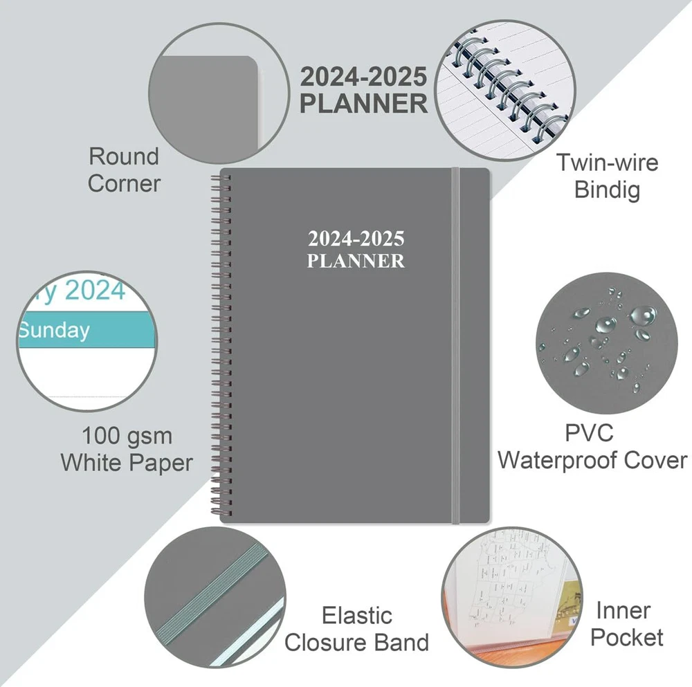 2024-2025 Planner - 8.5" x 11" Weekly Monthly Planner from July 2024 to June 2025, Academic Planner 2024-2025 with 12 Monthly Tabs, Inner Pocket, Elastic Closure, Grey 2024-2025 Weekly & Monthly Planner, simple and elegant academic planner 2024 which could keep you organized everywhere you go. Size: Medium 8.5" x 11" Dates: Weekly & Monthly Planner from July 2024 - June 2025. 12 month calendar, 2 pages per month, Each monthly calendar is followed by 5 weekly pages, 2 pages per week, Weekly spread include ample space to write down your daily schedule, appointments, activities, week's focus, to do list/goal and keep track of all days clearly with the weekly view Features: Yearly Overview+Reference Information +Contacts + Important Date + Strong Twin - Wire Binding + Inner Pocket + Elastic Closure + Premium Paper + Classical Desige This 2024-2025 planners with flexible structures that allow you to keep track of goals, tasks, appointments, project, works, habbits etc. Perfect for planner, organizer, academic agenda or note pad for school, work or home or makes a great gift. Plan, create and schedule your daily life with this gorgeous monthly & weekly planner now. Planner 2024-2025 – Weekly & Monthly from July 2024 - June 2025, 12 months spiral planner great for an easy year-round planning and organizing. The size is 8.5" x 11", suitable for your backpack or work bag MONTHLY - This 2024-2025 planner covers with Each monthly spread contains an overview of the month with holidays, previous & next month calendars and a notes section. Plenty of room for notes and details WEEKLY - 53 weeks spread include ample space to write down your daily schedule, detailed appointments and activities and keep track of all days clearly with the weekly view TABS & POCKET - Each month is separated with laminated tabs for 2024-2025 planners, Inner pocket to store loose items like tickets, cards, papers etc. the planners other pages: 2024-2025 yearly overview/yearly goals/contacts page/Important dates page/notes pages. PREMIUM THICK PAPER - This 2024-2025 academic planner white paper, thicker at 20% than normal, the paper of this planner is ink-proof and is designed to avoid feathering. Archival-quality pages made from acid-free paper, resistant from damage by light and air Shipping from the USA All of our products are shipped from the USA, ensuring quick delivery to your destination. Payment We offer the following payment methods: PayPal, credit card, bank transfer, and eBay's secure payment system. Free Shipping & Free Returns Shipping within the USA is FREE. Additionally, any return is absolutely free for you. Risk-Free Purchase You have the option to return an item within 30 days without any justification. We cover the return shipping costs! Fast Shipping We ship immediately upon receipt of payment. Generally, the package is delivered within 2-3 days in the USA. If it takes longer, we will contact you. Quality and Costs Made in Europe, USA, China No customs fees or additional charges Total satisfaction guarantee Invoice with declared VAT available upon request in .pdf format Feedback Your feedback is very important to us. After you pay for your purchase, you will automatically receive positive feedback from us.