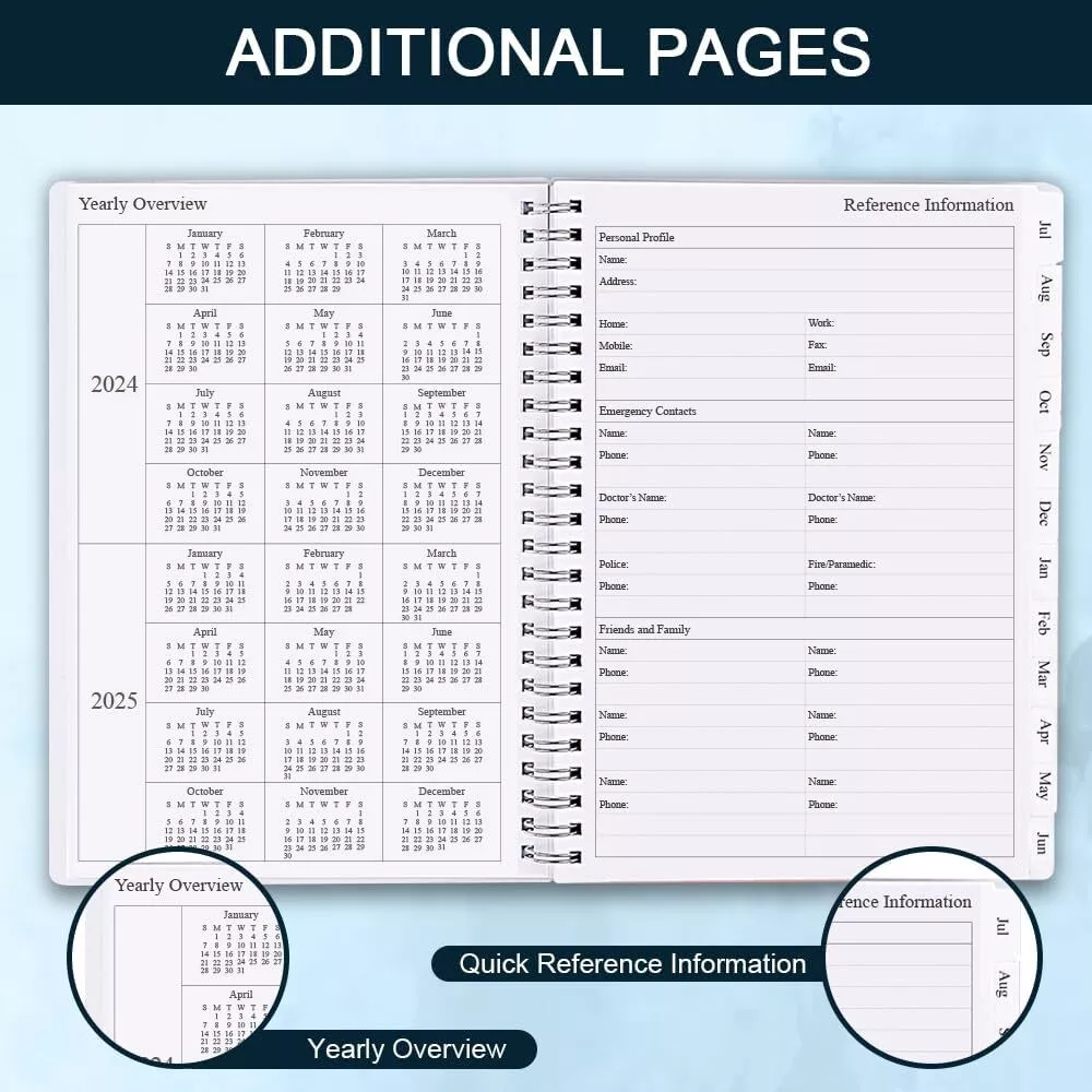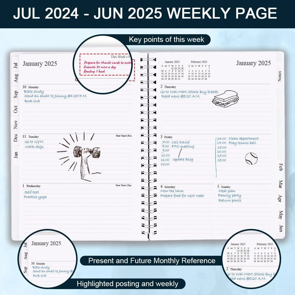 2024-2025 Planner - Weekly & Monthly 6.25" x 8.25", PL-A5PP-Flower Product Details Manufacturer: NOYARYJOUR Brand: NOYARYJOUR Item Weight: 11.3 ounces Package Dimensions: 8.46 x 6.57 x 0.55 inches Color: PL-A5PP-Flower Cover Material: Cardstock Material Type: Cardstock Size: 6.25" x 8.25" Sheet Size: 6.25 x 8.25'' Manufacturer Part Number: PL-A5PP-Flower Brand: NOYARYJOUR Color: PL-A5PP-Flower Cover Material: Cardstock Format: Organizer, Notebook Calendar Type: Gregorian Target Audience: Adult Sheet Size: 6.25 x 8.25'' Material: Cardstock Pages: 82 Pages Binding: Organizer PLANNER OVERVIEW - 12 Month planner 2024-2025, July 2024 - June 2025, featuring 12 months of monthly and weekly pages for easy planning. 6.25" x 8.25", comfortable to carry and use MONTHLY - Each monthly spread contains an overview of the month with holidays, previous & next month calendars and a notes section. Plenty of room for notes and details WEEKLY - 2024-2025 planner with weekly spread include ample space to write down your daily schedule, detailed appointments and activities and keep track of all days clearly with the weekly view TABS & POCKET & LAY FLAT BINDING - Each month is separated with laminated tabs, Inner pocket to store loose items like tickets, cards, papers etc. Durable twin-wire binding for laying completely flat SUPERIOR QUALITY - Monthly planner 2024-2025 with sturdy and flexible cover to protect the inner pages well. Thick paper to reduce ink leakage, erase fraying and shade issues. Plan, create and schedule your daily life with this gorgeous monthly &weely planner This compact 2024-2025 weekly & monthly planner(July 2024 - June 2025) measuring 6.25" x 8.25", is a simple and elegant planner which could keep you organized everywhere you go. Simple page designs and plenty of room for all of your important information. 12 Month planner contains: yearly overview (calendar of 2024-2025) holidays 2 contact pages 12 month calendar sections 60 week sections 14 notes pages(lined) Each monthly spread contains an overview of the month and a notes section. 12 month calendar, 2 pages per month. Plenty of room for notes and details. Each monthly calendar is followed by 5 weekly pages, 2 pages per week. Weekly spread include ample space to write down your daily schedule, appointments, activities, week's focus, to do list/goal and keep track of all days clearly with the weekly view. This distinctive monthly & weekly planner features high quality 100gsm white paper for easy writing and reducing ink leakage, erase fraying and shade issues, providing clean writing space for your appointments, to-dos and reminders. This monthly and weekly planner responds well to fountain pen, gel pen, roller pen, ballpoint pen, highlighter, pencil and etc. Monthly calendar tabs allow easy access to each month’s plans. Planner 2024-2025 with sturdy and flexible covers to protect the inner pages well, thick paper for smooth writing, strong twin-wire binding, sturdy plastic pocket to store loose items, like tickets, cards, papers etc, all these details demonstrate high quality. This personal organizer 2024-2025 features flexible structures that allow you to keep track of goals, tasks, appointments, project, works, habbits etc. Perfect for planner, organizer, academic agenda or note pad for school, work or home or makes a great gift. Plan, create and schedule your daily life with this gorgeous monthly & weekly planner now.