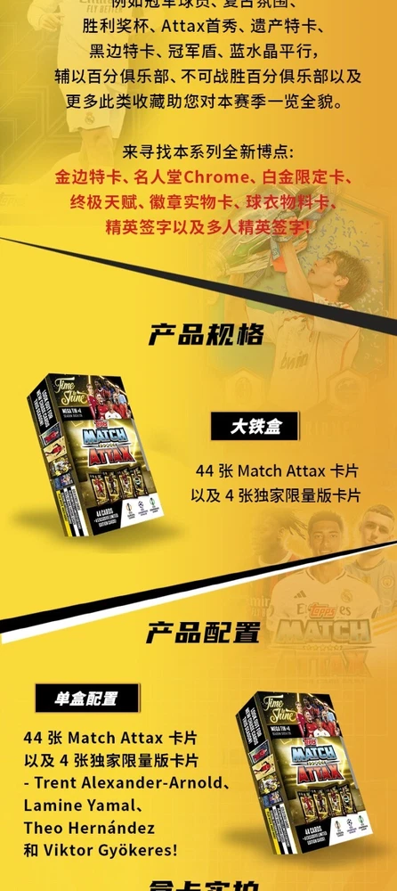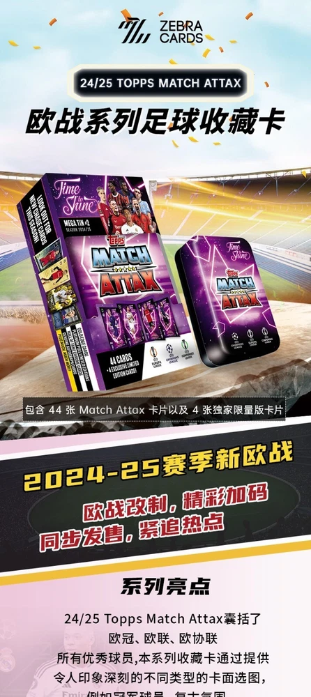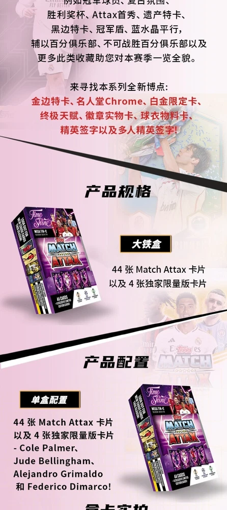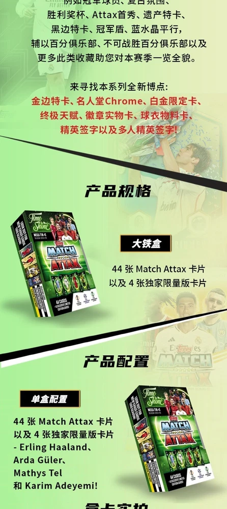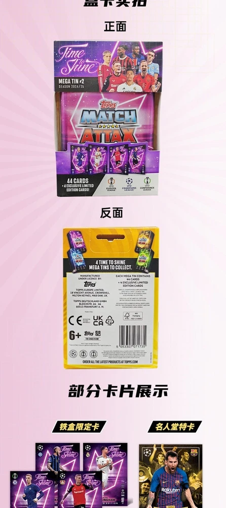 2024 -25 PANINI TOPPS MATCH ATTAX Football Soccer Trading Cards 1 Set-4 Box New Features: Product Name: STOPPS MATCH ATTAX Trading Cards Character:Cristiano Ronaldo,Kylian Mbappe,Erling Haaland Main material: Paper About shipping: All the parcels will be sent out within 1-4 working days. to different countries the transportation time is different. All the tracking numbers can be tracked online. Because the product is placed on the shelf, some products may have some visual wear and tear. If you have any questions please contact us first. we will do our best to satisfy you. Contact US: Dear customer, if you have any comments or questions, please feel free to contact us through eBay Information at any time. We will definitely reply to you within 12 hours and do our best to resolve any issues. We will be honored to provide you with high-quality service.