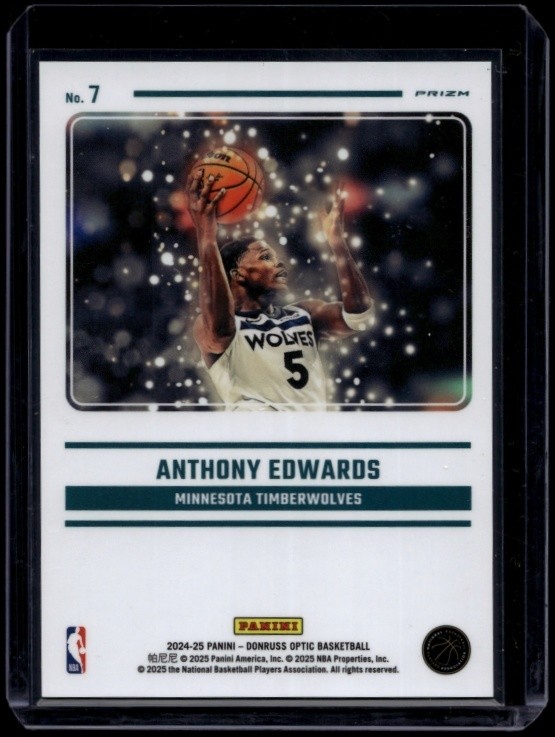Get your hands on the highly sought after 2024-25 Panini Donruss Optic Basketball Anthony Edwards #7 Mythical trading card featuring the rising NBA star. This limited edition card showcases Edwards in action, making it a must-have for any basketball card collector. Don't miss out on adding this rare and valuable card to your collection today!