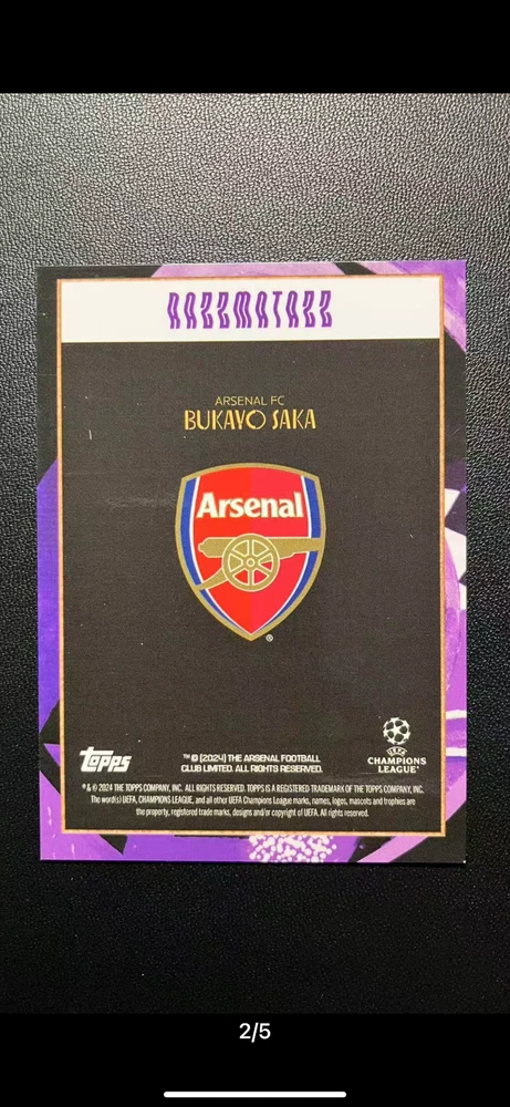 Capture a slice of football history with the 2024-25 Topps Deco UEFA Champions League trading card featuring the dynamic Bukayo Saka of Arsenal. With its limited print run of just 25, this card is a must-have for collectors and fans alike. The striking green parallel variety adds an exclusive touch to your collection, commemorating the skill and poise of the young winger on the pitch. This card, numbered 199, is part of the esteemed Topps series and boasts a sleek design that reflects the player's rookie status. Although it's not autographed, the sheer rarity and connection to UEFA Champions League make it a standout piece. Celebrate the legacy of football greats and add a piece of the action to your collection today.