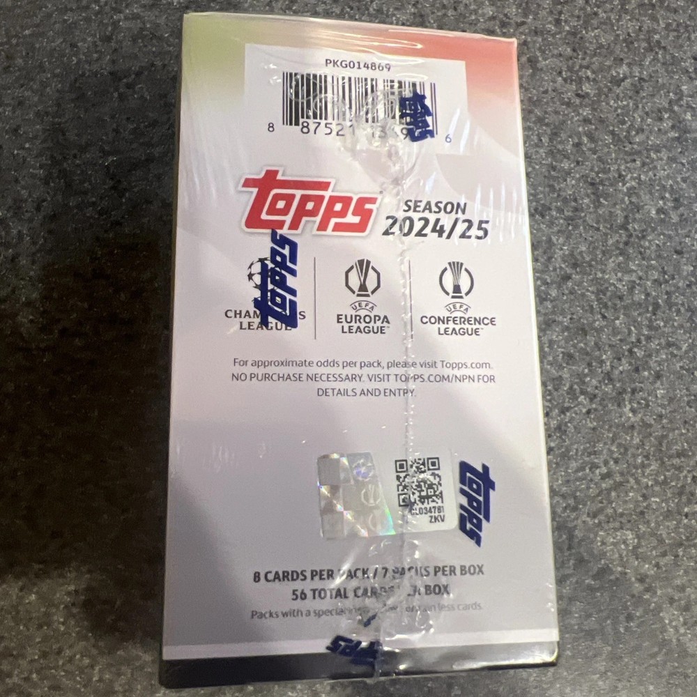 Type:Sports Trading CardSet:2024-25 Topps Flagship EditionManufacturer:ToppsNumber of Cards:56Season:2024-25Number of Boxes:1League:UEFA Champions LeagueSport:SoccerYear Manufactured:2024Configuration:Box