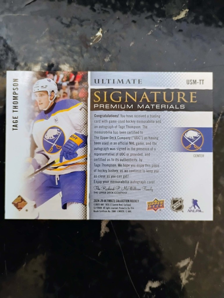 2024-25 Ultimate Collection TAGE THOMPSON #USM-TT Signature Patch Tag Auto SP 2/5 Hard Signed. Beauty card!! Sharp and clean, looks better in person.. only 5 made!