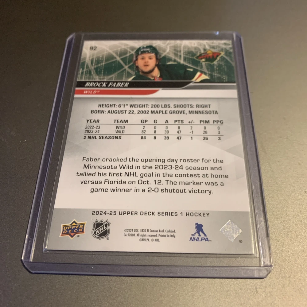 2024-25 Upper Deck Brock Faber #92 Minnesota Wild. Condition is Ungraded. Shipped with eBay Standard Envelope for Eligible Items up to $20.