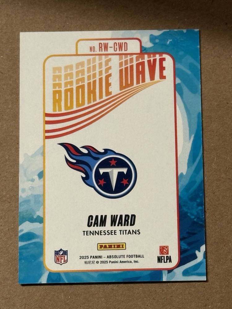 You are bidding on the card in the pictures. It’s a 2025 Absolute Cam Ward Rookie Wave Rookie Insert Card RW-CWD RC!! It’s pack fresh and in NM+ or better condition. Please look at the pictures and read the description before you bid. The card will be shipped in a top loader inside a # 10 envelope. It will be shipped USPS first class with tracking. combined shipping. PayPal only. Thanks