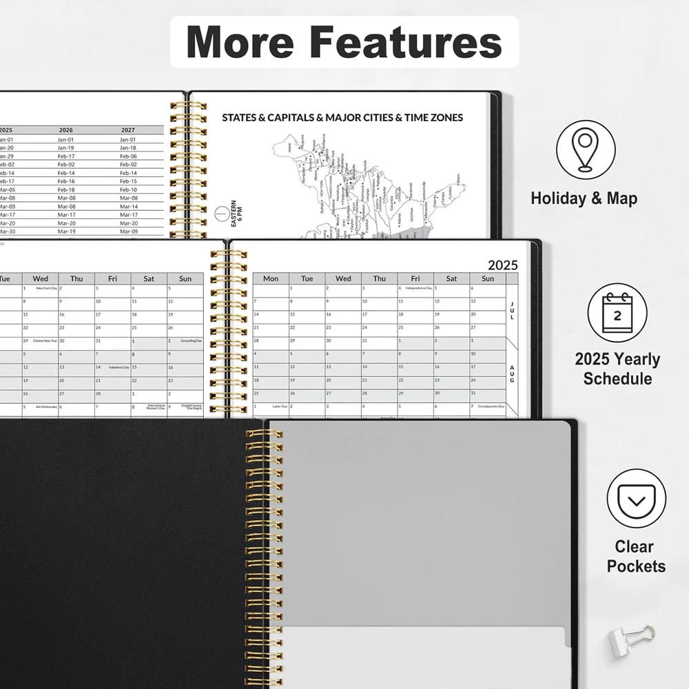 Store New Arrivals Add to Favorite View Feedback Contact Fast deliveries to the customer's home Quality customer service John Make the customers happy! 2025 Appointment Book, Quarter-Hourly, Weekly & Monthly - from January 2025 - December 2025, 8.5"X11" Weekly Planner, Flexible Cover, Note Pages, Pockets, Bookmark, Spiral Binding, Black Description 2025 Professional Planner - Cover from January 2025 to December 2025, Features 12 months of monthly and weekly pages, and also inclueds 3 extra monthly pages for October to December 2024 and 12-monthly tabs, with Lay-flat capability for all your planning and scheduling needs, and measures 8.5" x 11" Monthly View - Each date box provides ample writing space and includes the previous and next month's reference, ruled daily blocks with popular holidays, and Julian Dates for easy long-term project and appointment scheduling. Weekly View - 2-page weekly layout from Monday to Sunday, 15-minute time slots in increments from 7:00 a.m. to 8:45 p.m. on weekdays, and 7:00 a.m. to 8:30 p.m. on weekends, 3-month reference previews, allowing you to manage time and track appointments easily. Fight Ink-bleeding Thick Paper - Made with premium heavyweight paper to prevent ink bleed. The 8.5x11" size offers enough space for organization and scheduling. Sturdy notebooks withstand frequent transfers in and out of backpacks, briefcases, and cars. Additional Features - The weekly planner includes 2025-2027 calendars, year schedule for full year 2025, holiday lists, contact pages, notes pages, important dates, and US time zone map. Rainbow monthly tabs simplify navigation and add a stylish, playful element to the planner's aesthetic. Introducing the ultimate planning tool for the year 2024! Our Professional Appointment Planner is the perfect companion to keep you organized and on track throughout the year. This planner covers everything you need from JAN 2024 to DEC 2024, with 12 months of monthly and weekly pages that lay flat for easy planning and scheduling. This planner measures 8.5" x 11" and is designed to meet all your planning needs. Our planner is crafted with high-quality, ink-resistant paper to prevent ink bleed and withstand frequent transfers in and out of backpacks, briefcases, and cars. In addition to these amazing features, our planner also includes yearly planner calendars, holiday lists, contact pages, notes pages, and important dates. Rainbow monthly tabs make navigation easy and add a stylish, playful element to the planner's overall aesthetic. Kickstart your journey to a more organized and productive life! Sheet Size Letter Calendar Type Monthly/Weekly Target Audience Adult Format Notebook, Organizer Color Black Binding Spiral-bound Cover Material Paper Material Paper Material Type Paper Manufacturer Part Number S-W2831 Package Dimensions 11.02 x 8.58 x 0.67 inches Item Weight 1.23 pounds Ruling Horizontal lines (ruled daily blocks) Special Feature Rainbow monthly tabs Size 8.5"x11" ABOUT US We offer the best prices around on high quality products. Our E-store includes media such as books, movies, music and games while offering electronics, toys, sporting apparel, clothing, tools, general home, garden items and more. SHIPPING We are always working hard to ensure your package arrives as soon as possible. Please understand that some factors like weather, high postal traffic, and the performance of shipping companies are outside of our control. We offer free shipping to the lower 48 states and ship within 2 business days of payment, usually sooner. We do not accept P.O. Boxes. Please provide a physical address. For shipping outside of the continental USA, we only use eBay's Global Shipping Program. The item is shipped to KY and then sent to the rest of the world. International customers are responsible for all duties and taxes. Continue to 'check out' to calculate costs for shipping the item to your country. Messages regarding eBay's Global Shipping Program MUST be directed at eBay EXCLUSIVELY. RETURNS We offer a 30-Day Return Policy on items in which you are not completely satisfied with. You have the option of a full-refund or an exchange of the item. No returns are available on items shipped outside of the USA PAYMENT We accept PayPal. CONTACT US This page content is yet to come Please ad us to your favorite seller and visit again later Thank You CUSTOMER SATISFACTION We try our very best to make sure every customer is completely satisfied. If there's a problem, message us! We're happy to help. WE ACCEPT