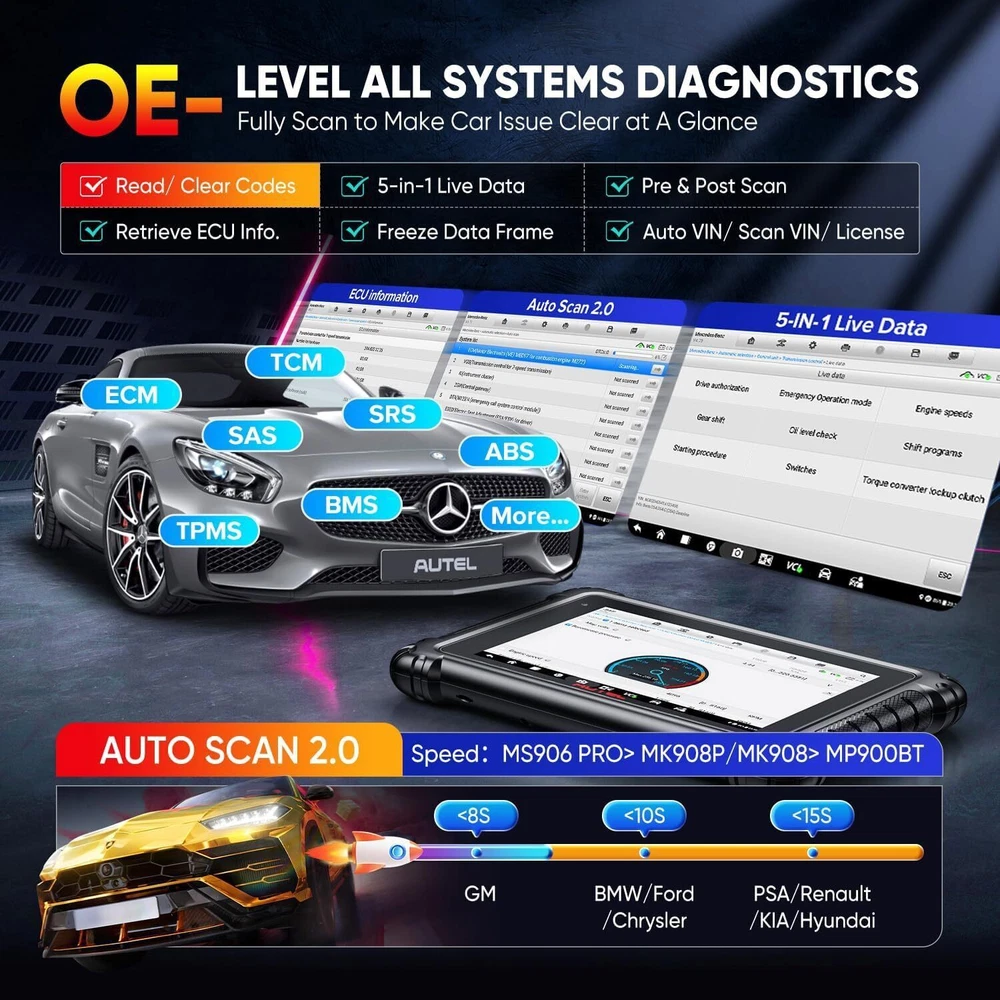 2025 Newest Autel MaxiSys MS906 Pro C0ding Full System Diagnostic Scanner Tool