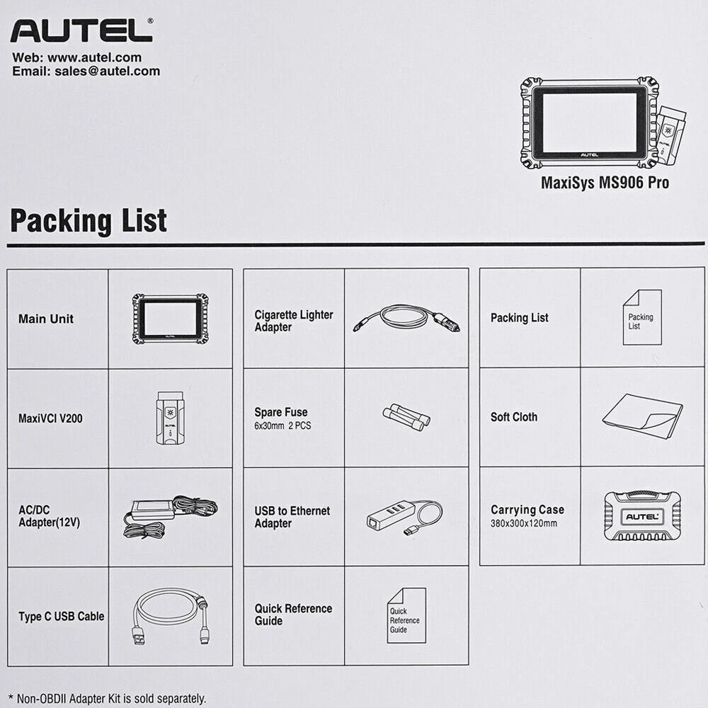 2025 Newest Autel MaxiSys MS906 Pro C0ding Full System Diagnostic Scanner Tool Autel MaxiSYS MS906 PRO, 2025 MS906PRO 2.0 Same as MS906 MAX Newer of MP900BT MK908, ECU Coding, Bidirectional & 3000+ Test, 36+ Service, CAN FD & DOIP, VAG Guide, FCA SGW, 10.0 OS, Auto Scan 2.0 🚘Free Gift:MV108S*1 About this item: 🏆【2025 Autel Flagship MS906 PRO, Same MaxiSYS Software as Autel Ultra/ MS919/ MS909】 As 2025 upgraded ver. of Elite2 MK908 MS908S PRO MS906 MS906BT MP900BT MK900BT MS900TS, MaxiSys MS906 PRO takes a big leap in hardware & software. 10X Faster diagnostic speed: 🚀Android 10.0 OS, Octa-Core CPU, 116000mAh Battery, 8in 1920*1200, 4+128GB Memory, 5G&2.4G WIFI, 16MP&5MP Camera, etc. Top-notch features: ✅Smith-level ECU Coding/Adaption; ✅3000+ Active Tests; ✅36+Reset Service; ✅DoIP & CAN FD; ✅VAG Guide; ✅Pre & Post Scan; ✅WiFi Print;👍What's more, with the 2025 newest Auto Scan 2.0 technology, MS906 PRO realizes scanning in seconds, such as GM<8s, B.ENZ<40s, BMW/VAG/Ford <10s, etc. 🏆【Enhanced ECU Coding, Same as MSUltra/ MS919/ MS909/ Elite II Pro/ MS908S PRO/ MK908 II】 As Autel most popular flagship scanner, MS906 Pro diagnostic scan tool comes with advanced functions, but at half the cost! ECU coding enables you to 👏Improve car performance, 👏Change dislike settings, 👏Active higher-level features to customize your cars as you like,👏You can also match/c.ode/relearn/ the blank modules to the on-board systems after replacement, etc. 👏Moreover, MS906PRO escaner automotriz supports Online coding for BMW F/E chassis, for Porsche&VW, and offline adaption for Ford.🚦Note: ECU Coding is not universal, pls send us your VIN# to check compatibility first. 🏆【3000+ Full Bi-directional Control/ Active Tests & 36+ Hot Services】 Autel MS906Pro automotive scanner can a.ctuate solenoids and a.ctuators for active testing, and send commands to many systems/ components to test their working status and pinpoint problems in seconds without using the vehicle controls, saving you tons of time! Besides, 36+ hot reset services meet your daily maintenance demands, such as Oil Reset, EPB, BMS, ABS Brake Bleed, Injector Coding, SAS, Suspension, Throttle, Power Balance, etc. Services vary from car, please send us your car VIN# to help you check compatibility first. 🏆【OE-Level All System Diagnostics, BT Connection for 15,000+ Vehicles】 Autel scanner MS906 PRO can perform OE level comprehensive diagnostics on 15,000+ U.S., Asian, and European models, up to 2024 & 2025 newest cars. More stable, faster, and no limitations! Adopting 2025 advanced German Wireless Technology, MaxiSYS MS906 PRO comes with an enhanced BT interface VCI200 for remote diagnosis, unlike the outdated wired code readers such as MaxiCOM MK808S/ MX808S/ MX900/ MK900/ MP808/ MS906/ MK908/ curled up on the steering wheel only with a short 1m cable. Welcome to reach us for compatibility before ordering. 🔥🔥【CAN FD/ DoIP Protocols & FCA AutoAuth】 Same as MaxiSys Ultra MS919 MS909 MS908S Pro II, Autel MS906 Pro also supports the latest CAN FD/ DoIP protocols, which can perfectly work for GM vehicles after 2020, for BMW F G Chassis models, for Jaguar & for Land Rover cars after 2017, for Volvo after 2018. Besides, via the function of FCA AutoAuth & Renault SGW, MS906 PRO can directly perform full diagnosis & reset services on FCA cars after 2017 & Renault newest vehicles with SGW. No need for extra 12+8 adapters! 📢📢【2025 Superfast Auto Scan 2.0 & 10+ High-end Functions】 Superior to old Autel MK908 MS906 MS906BT MK906BT, MaxiSys MS906Pro launched 10+ NEW features, win you more business, e.g. 🟢Auto Scan in seconds (Newest 2.0 Ver.), 3X f.aster than competitors: GM<8s, BMW/Ford/VAG/Chrysler<10s, etc. 🟢Scan VIN/ License 🟢Pre & Post Scan 🟢Component Matching 🟢WiFi Print (same as Autel Ultra MS919 MS909, no need a PC) 🟢VAG Guided Function 🟢Power Balance 🟢Flash Hidden Features 🟢Battery Tests w/ BT506 🟢Endoscope with Autel MV108S MV105 Digital Camera. More functions are waiting for you to experience! 🏆【Battery Test with BT506 & Report to Autel CLOUD】 Compared with Autel MaxiCOM MK808, MP808, MS906, MK906BT, MS906BT, MaxiSys MS906Pro supports more expansion functions, compatible with more maintenance aids: BT506 battery tester, MV108 camera, Oscilloscope, etc. Besides, MaxiSys MS906 Pro supports Autel Cloud Service, including Remote Expert Service (Need your S/N), One-click Help, and Device & Report Management, which can update diagnostic reports to Autel Cloud Service and share them with your customers anytime anywhere. 🏆【15,000+ Car Coverage & NO IP Restrictions & Reliable After-sale Service】 Since its release, we've won great favor from customers worldwide. Autel Wireless scanner MS906Pro supports OBD1 & OBD2 compliant vehicles, covering 15,000+ without IP Restriction. We are available 24/7/365 to support you and offer the following: 12-month f-ree updates, a 1-year brand w-arranty, life-time professional tech support, 30-day full re-fund & re-placement policy. 🚦Note: MS906pro ONLY supports English. 📢 If you have any questions, please reach out seller for assistance. 2025 Autel Scanner MS906 PRO, Same as Elite II PRO/ MK908 Pro II, Up of MP900BT Autel MaxiSys MS906 Pro Specifications: Operating System: Android 10.0 Processor: Samsung Exynos 8 Core(4*M2 2.3G + 4*A53 1.7G) Memory: 4/128GB Display: 8.0" LED capacitive touch screen with 1920x1200 resolution Connectivity: • Wi-Fi (802.11 b/g/n)USB: 2.0, Mini USB 2.0 Wireless BT V2.1+EDR Class1, HDMI 1.4a SD Card (support up to 32 GB) Camera (rear): Front: 5 Megapixel Rear: 16 Megapixel Sensors; Gravity Accelerometer, Ambient Light Sensor (ALS) Audio Input/Output: • Microphone • Single Speaker • 3-Band 3.5 mm stereo/standard headset jack Power and Battery: 11 600 mAh 3.7 V lithium-polymer battery Charging via 12 V AC/DC power supply Input Voltage: 12 V (9-35 V) Power Consumption: