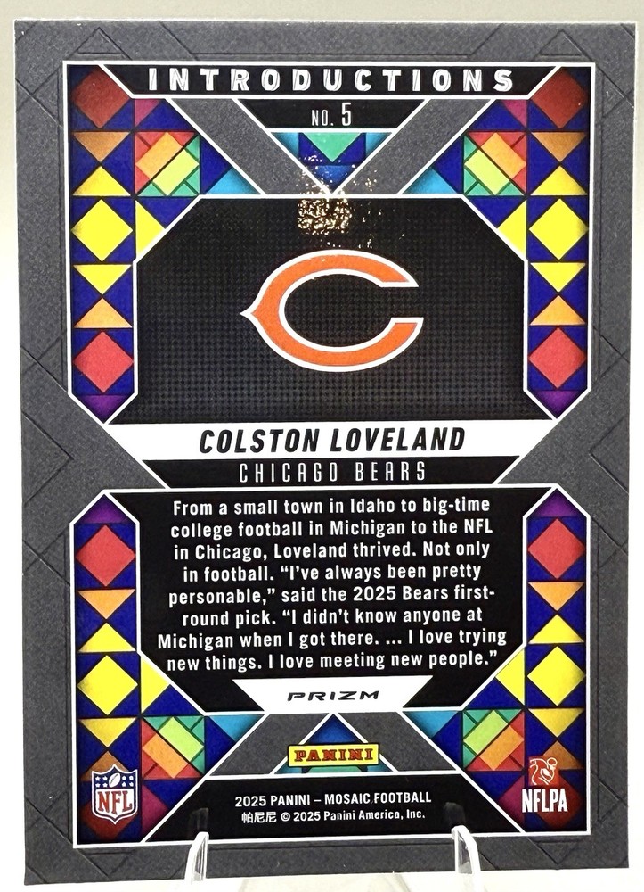 2025 Colston Loveland - Mosaic Introductions No Huddle Prizm 🔥 Rookie Bears RC. Condition is Ungraded. Shipped with eBay Standard Envelope for eligible items up to $20.