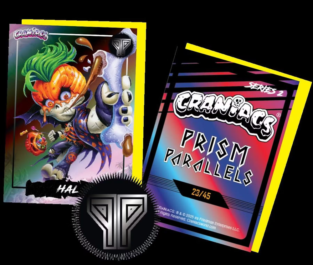 2025 Craniacs Series 2 Trading Cards Factory Sealed Hobby Box Introducing Craniacs Series 2, f rom creators Joe Simko and Ira Friedman! Craniacs trading cards are the foundation of all-new universe bursting with unique characters, wildly imaginative settings and compelling stories! Collect all unique Futerra foils! Collect Foil and Parallel Sets! Search for Prize Redemptions! Hobby Box Exclusive Futerra Blue Pulsar! Product Breakdown: 24 Packs per Box, 7 Cards per Pack 1 Sticker or Chase Card per Pack Look for Artist Sketch Cards Prism Parallels" Sequentially Numbered Gold-Stamped Set (25 Designs, 1:28 Packs) Blue Pulsar Futerrra Foil Cards (25 Designs, 1:28 Packs) Pure Pulsar Futerra Foil Cards (25 Designs, 1:14 Packs) Clear Crystal Retrovia Foil Cards (25 Designs, 1:14 Packs)