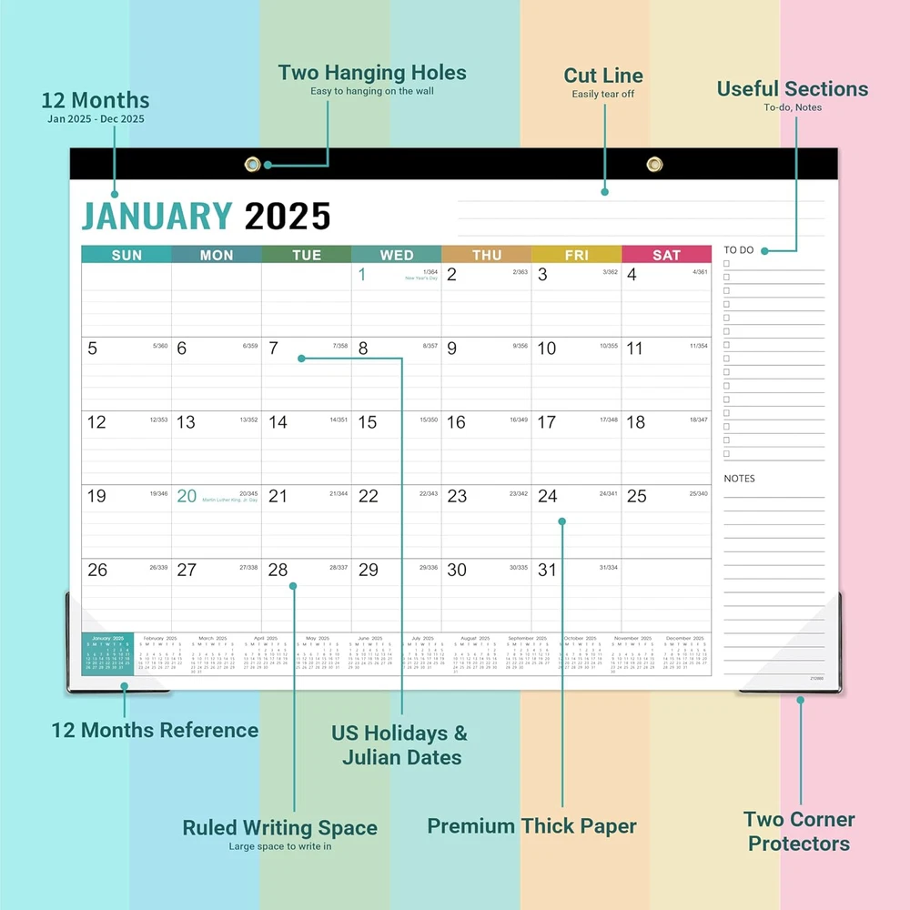 Store New Arrivals Add to Favorite View Feedback Contact Fast deliveries to the customer's home Quality customer service John Make the customers happy! 2025 Desk Calendar - Desk Calendar 2025, January 2025 - December 2025, 12 Monthly Desk Pad/Wall Calendar 2025, 2-In-1 Desktop Calendar, 17" X 12", Thick Paper, Corner Protectors Description ● 2025 DESK CALENDAR - This desk calendar 2025 covers 12 months from January 2025 - December 2025 with marked holidays. Focus on easy and efficient planning of the whole year. ● SPECIAL FEATURES - The cutting line for easy to tear off. 2 hanging holes + 2 clear corner protectors + Printed with high quality and well-balanced color ink. ●LARGE RULED BLOCKS - Large, ruled daily blocks offer plenty of space for your daily schedules. Each block is 1.9" x 1.6" with Julian date and holidays, remind you of each important holiday. ● PREMIUM THICK PAPER - The paper of this 2025 desk calendar is designed to avoid feathering and seepage, which keeps your planning neat and legible for a long time. ●2-IN-1 FEATURES - Two hanging holes make it good for wall hanging. It also works as a desk calendar or a desk pad, a great tool for long term planning. Clear corners keep pages flat on desk or wall. Product Description 2025 Desk Calendar, January 2025 - December 2025, 12 Monthly Desk/Wall Calendar 2-in-1 FEATURES ABOUT THIS DESK CALENDAR 2025 January 2025 - December 2025 monthly desk/wall calendar. Remind you every important holidays with Julian date , marked holidays and highlighted federal holidays. Tear off pages easily with sturdy glued and bolder binding. 12 months of monthly calendar pages with full year monthly reference to manage your daily plan without turning pages. Hang this desk calendar 2025 on the wall flexibly with 2 wall-hanging holes . One month per page format has ruled daily blocks (1.6" x 1.9") having large writing space. Reduce leakage, erase fraying and shade issues with thicker pages . Create clean writing space with bright white paper and to be stored for a long time with sturdy acid-free paper . Printed with high quality and well-balanced color ink for your health and pleasure. SPECIAL FEATURES Ruled Writing Space 12 Months Reference Premium Thick Paper US Holidays & Julian Dates SPECIFICATION 2025 deks calendar -January 2025 - December 2025 Pages of this desk calendar 2025: 18 Sheets Page size of this calendar 2025: 17" x 12" Inches Weight of this calendar 2025: 0.4 Pounds Color of this calendar 2025: Morandi Cut Line Two Hanging Holes Two Corner Protectors 2-IN-1 FEATURES Our desk calendar also can be a wall calendar with two-eyelet wide top binding . Clear corners keep pages flat on desk or wall. The durable backboard ensures you always have a sturdy writing surface . It is big enough to write down events and deadlines while still fitting comfortably on the desk, the corner tabs at the bottom to prevent the corners of the paper from curling or ripping are a nice touch. 2 Hanging Holes Two hanging holes make it good for wall hanging. Block for Noting Notes / Ideas - Do listing on the right of this desk calendar to write important things. Two Corner Protectors Clear corners keep pages flat on desk or wall Premium Thick Paper The high-quality papers can avoid feathering and seepage. Do yourself a favor and get this desk calendar 2025 for your well-lived and efficient life! Our 2025 desk calendar/pad has a wide, black paper top binding with eyelets for hanging and two black corners keep pages flat during hanging or desktop use. Let's design your bright future and happy life with this 2025 desk calendar Item model number TVZMMLDPPZL23Z13 Color multicolored Material Leather Material Type Leather Manufacturer Part Number TVZMMLDPPZL23Z13 Item Weight 8.8 ounces Year 2023 Product Dimensions 12"W x 16.8"H ABOUT US We offer the best prices around on high quality products. Our E-store includes media such as books, movies, music and games while offering electronics, toys, sporting apparel, clothing, tools, general home, garden items and more. SHIPPING We are always working hard to ensure your package arrives as soon as possible. Please understand that some factors like weather, high postal traffic, and the performance of shipping companies are outside of our control. We offer free shipping to the lower 48 states and ship within 2 business days of payment, usually sooner. We do not accept P.O. Boxes. Please provide a physical address. For shipping outside of the continental USA, we only use eBay's Global Shipping Program. The item is shipped to KY and then sent to the rest of the world. International customers are responsible for all duties and taxes. Continue to 'check out' to calculate costs for shipping the item to your country. Messages regarding eBay's Global Shipping Program MUST be directed at eBay EXCLUSIVELY. RETURNS We offer a 30-Day Return Policy on items in which you are not completely satisfied with. You have the option of a full-refund or an exchange of the item. No returns are available on items shipped outside of the USA PAYMENT We accept PayPal. CONTACT US This page content is yet to come Please ad us to your favorite seller and visit again later Thank You CUSTOMER SATISFACTION We try our very best to make sure every customer is completely satisfied. If there's a problem, message us! We're happy to help. WE ACCEPT
